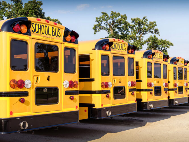 Žlutá na autobusech v USA má dokonce svůj název. Je to „lesklá žlutá národních školních autobusů“ a je standardní po celých Spojených státech. Vše začalo roku 1939, kdy se na jedné konferenci dohodli představitelé dopravy ze všech tehdejších 48 států na řadě bezpečnostních norem pro školní autobusy. Jednou z nich byla právě barva. Žlutá byla shledána jako nejlépe viditelná i v časném ranním nebo pozdním večerním světle. Černé písmo na žlutém autobusu je zároveň dobře čitelné. Trvalo až do roku 1974, než se podařilo všechny školní autobusy v USA sjednotit.