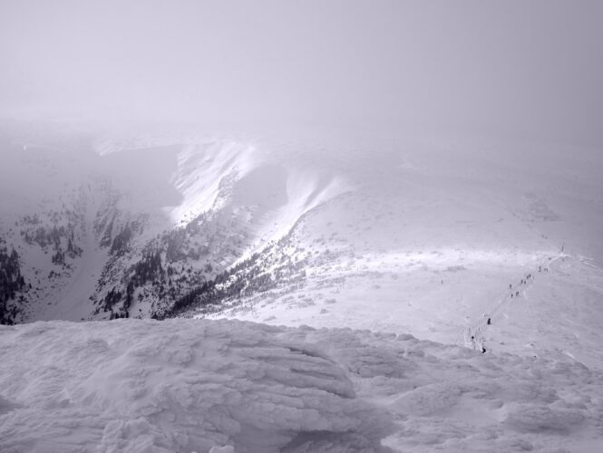 U Vysokého kola vzdal jak na třetím místě jedoucí Bartel, tak druhý v pořadí Feistauer. Po chvíli vzdal i jako poslední Josef Scheiner. Hanč zůstal na trati osamocen, o čemž neměl vůbec ponětí a pokračoval tak dál. Traťový komisař Muttich mu u Labské boudy podal citrón a rukavice. U Labského štítu, krátce před 12 hodinou se ho další traťový komisař Vladimír Záboj Vaina snažil zastavit voláním a máváním, protože věděl, že Hanč zůstal na trati osamocen. Ten mu ale pravděpodobně kvůli silné vichřici nerozuměl a pokračoval dál na Zlaté návrší. Na Zlatém návrší na sebe narazili s Vrbatou, ten zmrzlému příteli navlékl svůj kabát a čepici. Hanč pak pokračoval směrem k Labské boudě.  Vrbata se vydal dolů k Mísečkám. Obával se však o osud přítele, a tak se po chvíli vydal zpět na hřeben Hanče hledat.