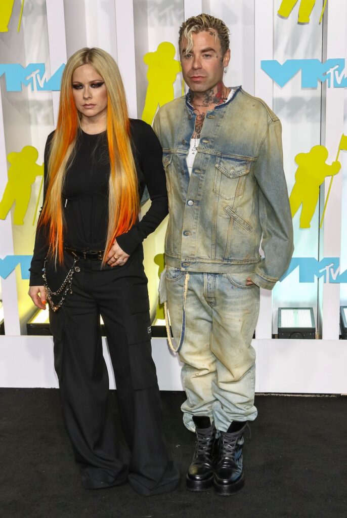 Snoubenci se sladili v podobném duchu. Hlavně pohodlně a pořád cool. Avril oblékla model Versace a Mod Sun si vzal džínové kalhoty a černé vysoké boty.