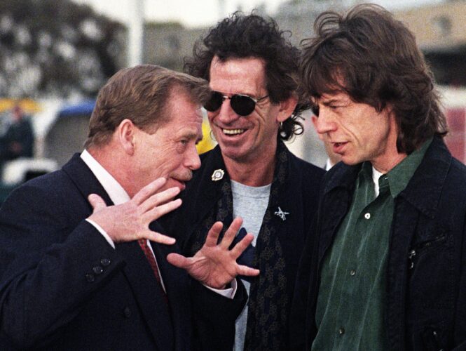 I u patrně nejslavnější stále existující rockové skupiny všech dob platí prakticky totéž, co u zmíněného Lou Reeda. Havel miloval The Rolling Stones a oni milovali jeho. Velmi dobře je to patrné ze záběrů pořízených během první návštěvy této britské skupiny v Praze v roce 1990, kdy 18. srpna vystoupili na vyprodaném Strahovském stadionu (a v hledišti koncertu, jemuž přihlíželo na sto tisíc lidí, byl pochopitelně i Václav Havel). Ostatně sám Havel údajně zapůjčil částku 30 tisíc dolarů coby část zálohy při dojednávání vystoupení s managementem kapely. Tato částka mu byla promotéry samozřejmě následně vrácena z utrženého vstupného.