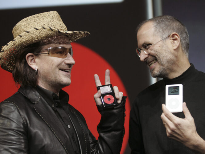 V roce 2004 nebyl Apple zdaleka tak ukotven v hudebním průmyslu jako dnes. iPod a iTunes byly stále v plenkách a MP3 stále koukaly na záda cédéčkům. Ve snaze naklonit misku vah směrem k digitální straně se Apple spojil s největší rockovou kapelou na planetě. Když byli U2 v roce 2004 připraveni vydat album How To Dismantle An Atomic Bomb, spojili se s technologickým gigantem pro reklamu, která památně využila singl Vertigo. Dále Apple vytvořil limitované edice iPodů, v nichž byla nahrána celá diskografie irské čtveřice. Ta zahrnovala i nevydané písně. Přístroj byl navíc vyzdoben laserem zvěčněnými autogramy. A samozřejmě nechyběla nová deska How To Dismantle An Atomic Bomb. O deset let později se Apple a U2 znovu spojili, aby překvapivě vydali desku Songs Of Innocence. Ta se zničehonic objevila ve všech účtech iTunes.