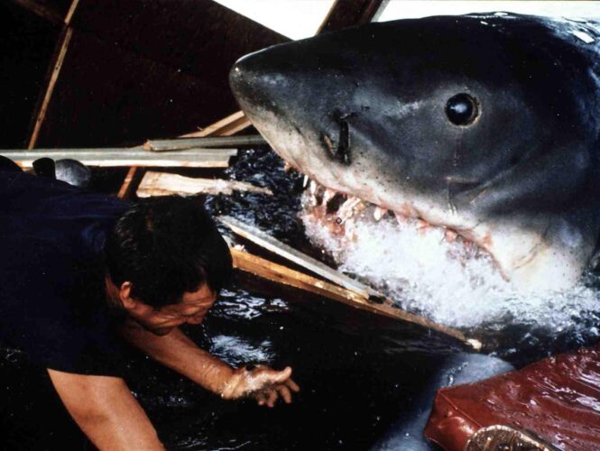 Dávejte si lidé pozor, neboť v okolí kina jsou vody zčeřené a náhodní kolemjdoucí hlásí podivnou ploutev trojúhelníkového tipu lehce čnící nad hladinu vody. Ano je to tak! Praotec všech letních filmových trháků, jedna z největší perel světové kinematografie se vrací do biografů! A ne je tak ledajakých, hrůzu z gigantických otevřených čelistí žraloka běsnícího hladem po lidském mase si nyní můžete užít na obřím plátně v IMAX. Nechte se doslova pohltit napínavým trhákem o skupině námořníků na chatrné bárce, kteří svádí nerovný boj s monstrem z hlubin, jehož nenasytnost proměnila idylku letní pláže v noční můru. Po takovém zážitku budete na příští dovolené radši srkat drink s paraplíčkem u bazénu, v dostatečné vzdálenosti od nevyzpytatelného moře, to nám věřte!