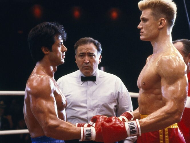 V 80. letech vrcholila studená válka, která se od diplomatických stolů přenesla i na filmové plátno. Americká společnost potřebovala budovat kult neporazitelnosti. A kdo jiný by měl malého „ale vlastně velkého Američana“ namotivovat víc, než Sylvester Stallone a jeho neslavnější postava. Zvlášť pokud zde šlo o pomstu za smrt nejlepšího kamaráda. Západ proti Východu, člověk versus stroj, přírodní trénink v kontrastu s programem státem podporovaného dopingu. Naspeedovaná čtyřka série Rocky přináší spoustu překvapivě fungujících paralel. Ikonický souboj dovedl Stallonea na kariérní vrchol a Doplha Lundgrena na práh životní příležitosti. Málokde můžete vidět tak dokonale černobílé vyjádření dobra a zla, které funguje skvěle i po bezmála čtyřiceti letech. Ikoničtí rivalové se potkali i v druhém Creedovi, tentokrát v roli koučů, kteří se přes respekt stále do morku kostí nenávidí.