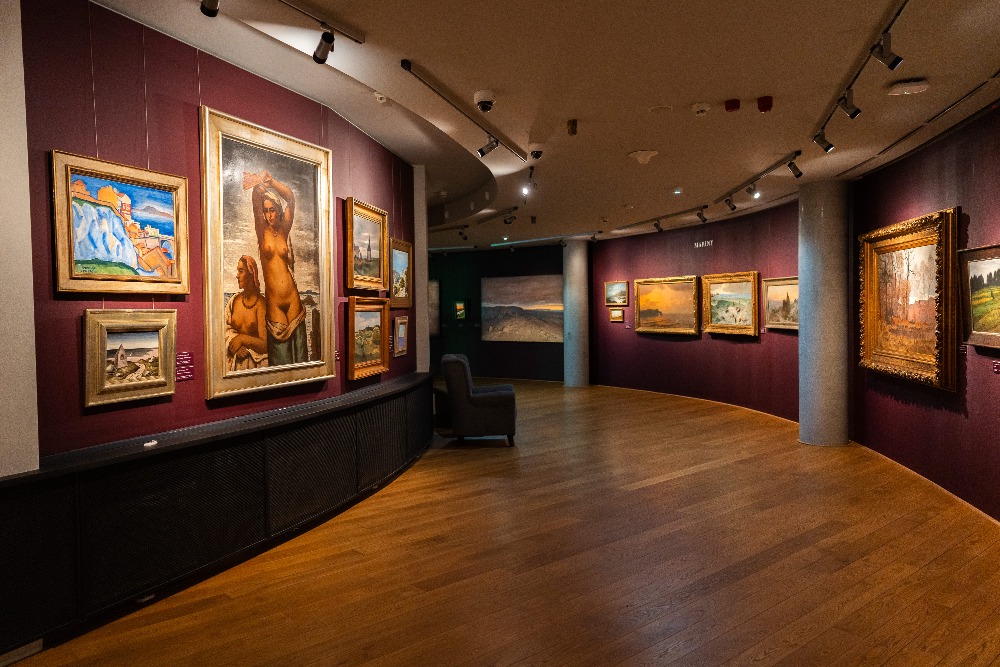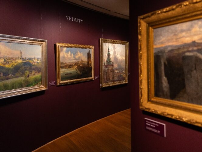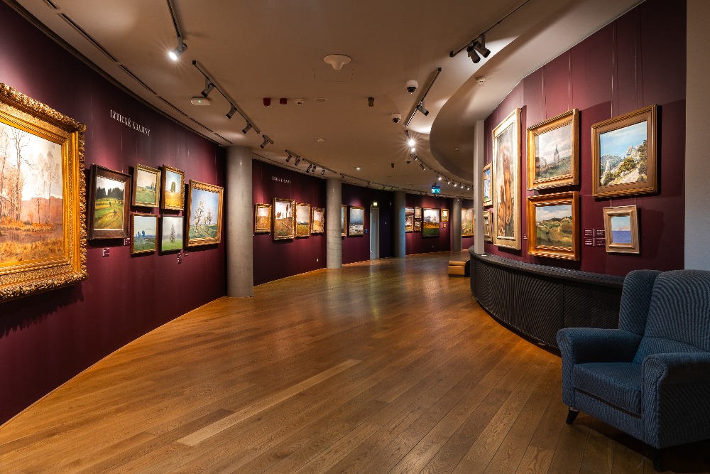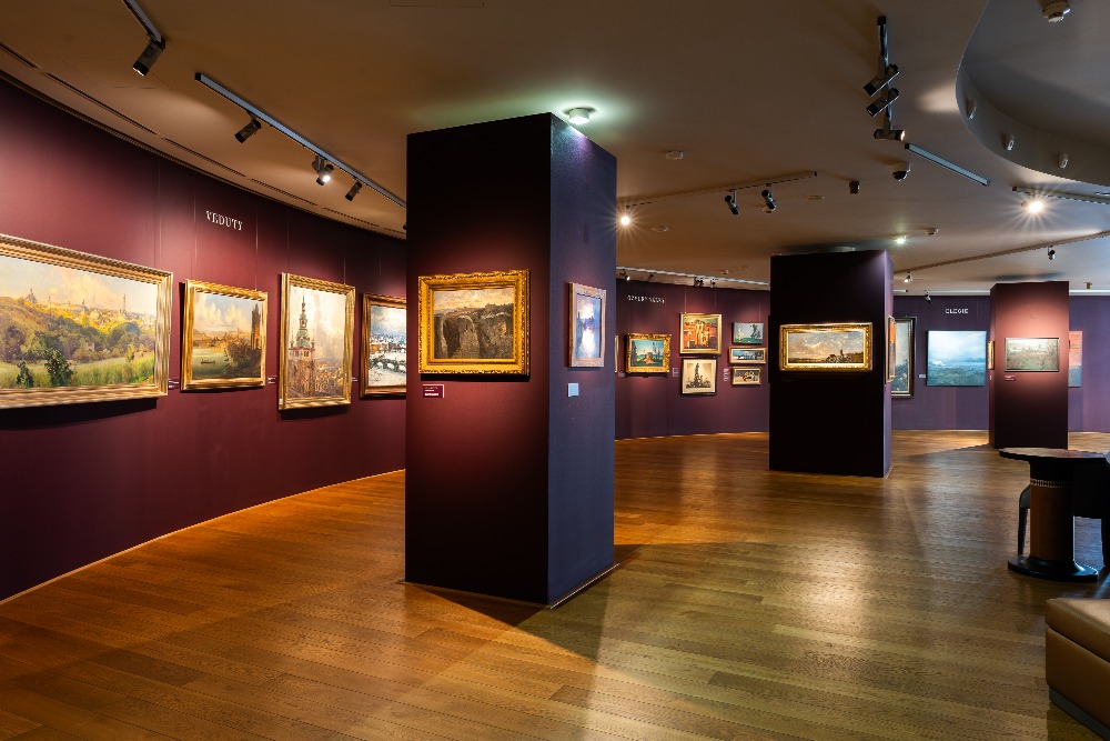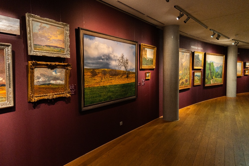 Celkem je vystaveno 120 obrazů od 62 autorů. Mezi nejzajímavější díla patří obraz Arnošta Hofbauera Před východem slunce z roku 1902, který byl naposledy vystaven v roce 1943, soubor pěti obrazů Václava Rabase a soubor pěti obrazů Antonína Slavíčka nebo obraz Ideální krajina od Aloise Kirniga ze sbírky Kooperativy. Zároveň zde najdete velmi kvalitní díla od současných umělců jako jsou Ivana Bachová, Tomáš Honz nebo Jiří Houska.