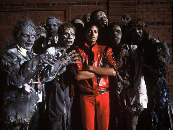Výčet nejzásadnějších videoklipů nejde začít jinak. Klip k titulnímu singlu alba Thriller upoutal pozornost téměř okamžitě. Jeho plná verze trvala bezmála 14 minut a objevily se v něm prvky hororového filmu, což bylo v té době revoluční. Nebývalá byla i cena, klip stál v té době neuvěřitelných 800 tisíc dolarů. Příběh začíná ve stylu romantických filmů z 50. let, pak se ale Jackson promění ve vlkodlaka a začne řádit se zombíky. Natáčení zahrnovalo profesionální choreografii a speciální efekty, nic z toho nebylo v té době v klipech obvyklé.
