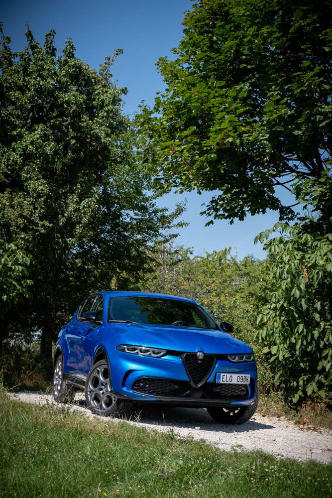 Hybridní Tonale má celkem 280 koní, ale při běžné jízdě se to moc nezdá. Plný výkon totiž ucítíte, až když přepnete na sportovní režim a zašlápnete pedál plynu skutečně až do podlahy. A pokud možno na rovince, protože v zatáčkách ucítíte, že kombinovaný systém se dvěma motory a akumulátorem zvýšil pohotovostní hmotnost na více než 1,8 tuny. Tohle prostě není lehkonohá Alfa, na jaké jsme byli zvyklí někdy před 10 lety. Ale pozor: V porovnání se soupeři jezdí pořád víc než slušně. Když své vnímání překalibrujete na dnešní měřítka, pořád se dá mluvit o tom, že Cuore Sportivo, neboli sportovní srdce, stále bije. V zatáčkách je Tonale i přes svou hmotnost a trochu vyšší těžiště mrštné a má skvělou mechanickou přilnavost, k tomu se přidává celkem pěkný zvuk výfuku. Honza se bez mučení přiznal, že si to během testování na některých točitých okreskách docela užíval.
