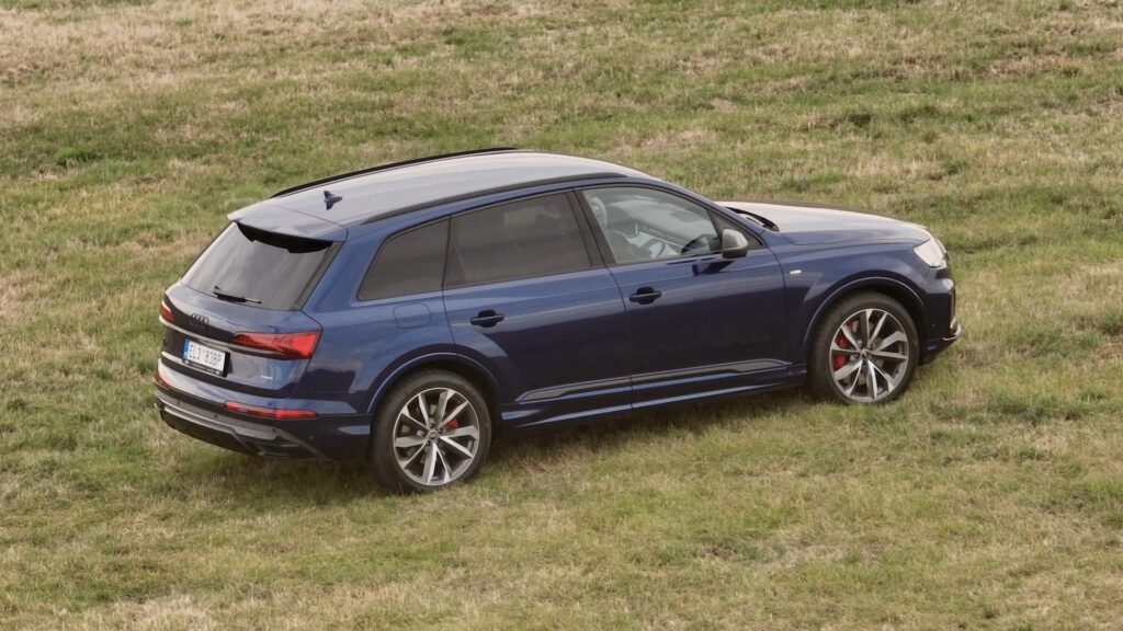 Pokud se ale ocitnete v situaci, kdy je potřeba těch koníků trochu víc, stačí přepnout na automatický hybridní systém, nebo trochu víc sešlápnout plyn a šestiválec ožije. Sladění systému je ovšem prvotřídní. Nedočkáte se zacukání, nekonají se žádné rušivé zvuky, snad jen při opravdu razantní akceleraci vzdáleně zaslechnete příjemně kultivovaný šestiválcový ševel, který ve vysokých otáčkách dostává příjemně říznou notu. Užijete si to ale prakticky jen v případě, že nemáte puštěné rádio, jinak to přeslechnete. Abychom ale jen nechválili, Q7 má některé drobné nedostatky. Na velkých 21” kolech se jí moc nelíbí na městském rozbitém povrchu, vysoká neodpružená hmotnost je někdy mírně mimo síly podvozku, takže sem tam do interiéru pronikne zabušení nebo nějaký ten otřes. Dá se také namítat, že by Audi mohlo posílit schopnosti plug-in hybridního systému větším akumulátorem, schopným aspoň dvojnásobného dojezdu a také stejnosměrného rychlonabíjení, protože konkurence už to umí. Dá se ale očekávat, že se automobilka bude spíš soustředit na třetí generaci Q7, která by měla přijít zřejmě v roce 2025, podle všeho možná ještě se spalovacími motory, od dalšího roku 2026 se totiž Audi zavázalo vyrábět pouze elektromobily, alespoň tedy pro evropský trh. Celkově se dá říct, že současná Q7 je výsostně povedené auto. A to Honza Koubek říká z pozice člověka, který velká SUV zrovna moc v lásce nechová. Schopnost udržet řidiče v až zenovém klidu v kombinaci s tichým provozem ale dokáží ospravedlnit i poměrně příkrou cenovku špičkové hybridní verze.