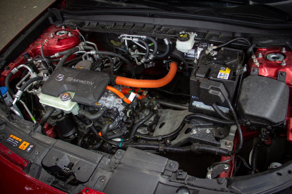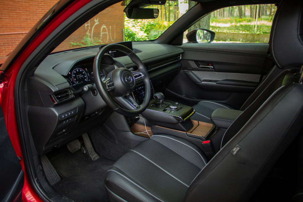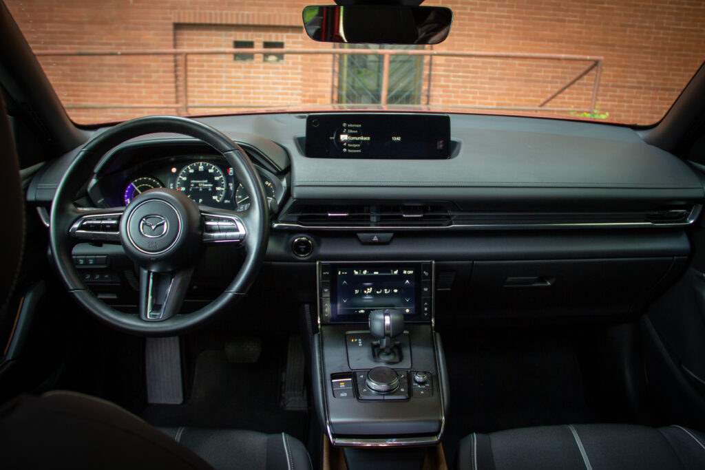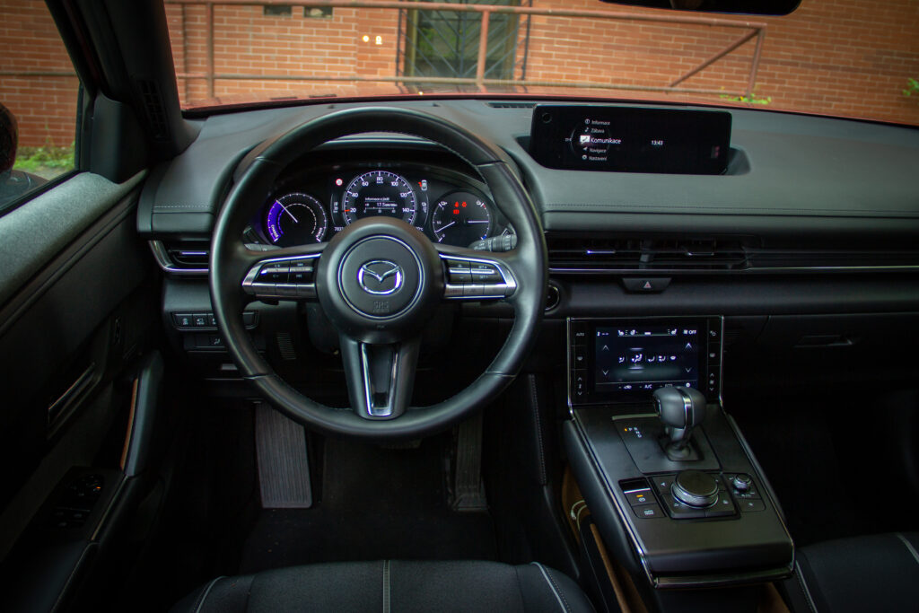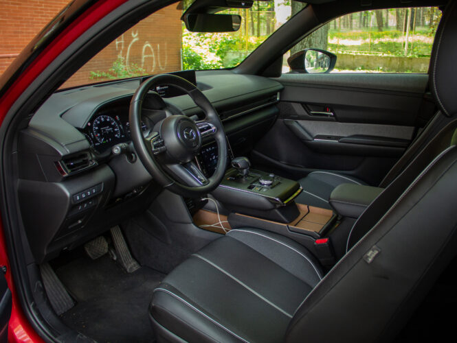 Protože se ke mě bohužel nedostala verze se spalovacím prodlužovákem dojezdu, musel jsem se spokojit s čistou elektrikou, jejíž akční rádius při dynamičtější jízdě klesá někam ke 150 km. Mazda v rámci faceliftu nezměnila ani parametry elektromotoru, který má 145 koní a 265 Nm, ani kapacitu akumulátoru, ale vylepšila nabíjecí křivku. Maximální výkon rychlonabíjení je stále 50 kW, ale u poměrně malého akumulátoru to nevadí a díky novému softwaru je z 20 na 80% kapacity nabito za méně než půl hodiny. Nemusíte tedy hledat superrychlé nabíječky a i krátký nákup v obchoďáku s běžnou rychlonabíječkou vám zajistí plné dobití.