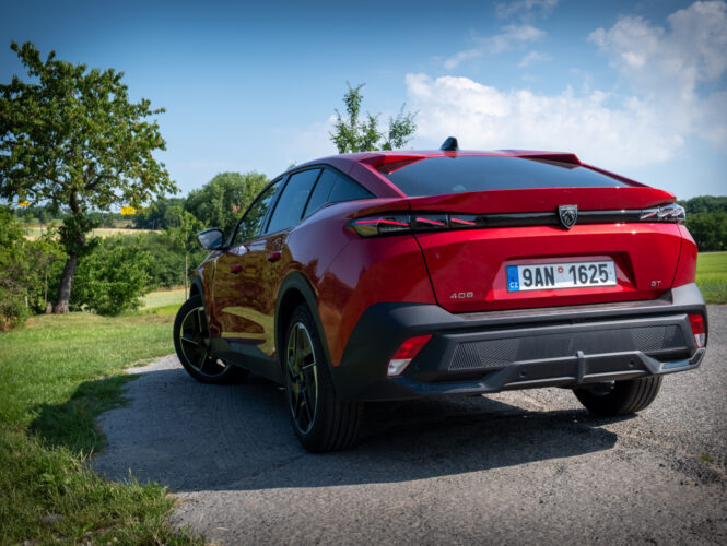Má sice větší kola a mírně zvýšený podvozek, ale karoserie je nízká a siluetou je někde na půl cesty mezi fastbackem a čtyřdveřovým kupé. Můžete ho mít jako plug-in hybrid, Honza si ale do testu vzal základní motorizaci s tříválcovou dvanáctistovkou. Na první pohled to zní jako špatný nápad, 408 je přece jen poměrně velké auto. Jenže pozor, jeho pohotovostní hmotnost je pod 1.400 kg, což je zaprvé opravdu příjemné překvapení a zadruhé to znamená, že i tříválec o výkonu 130 koní autu docela stačí. Nebudeme předstírat, že je to kdovíjaký rychlík, ale ve městě nám 408 přišla svižná naprosto dostatečně. Teprve když vyjedete na okresku a pokusíte se o dynamičtější jízdu, motoru trochu dojde elán.