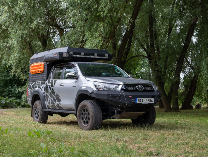 Všechno je vymyšlené jednoduše a bytelně, aby se toho co nejméně mohlo porouchat. Vzadu na autě najdete úchyt na velkou plynovou lahev (pro pořádné vaření) a kanystr s pitnou vodou, na boku auta pak výjezdy, kdybyste někde zapadli do bahna či písku. Je to prostě fantastická hračka. Ale samozřejmě není zadarmo. K původní ceně Hiluxu, což je zhruba 1,3 milionu, přidaly terénní úpravy a expediční nástavba další 1,1 mil Kč, takže celková cena dosáhla zhruba 2,4 milionu korun. To není málo, zejména když vezmeme v úvahu, že nástavba je na autě namontovaná napevno a tudíž ho už nemůžete používat jako pick-up. Navíc si na rovinu řekněme, že na výlety po Čechách takové auto prostě nedává smysl. Ale pokud patříte k těm, kteří každoročně tráví dva měsíce cestováním po Banátu, Albánii, nebo nějaké ještě exotičtější zemi, mohla by to být naopak veskrze užitečná hračka.