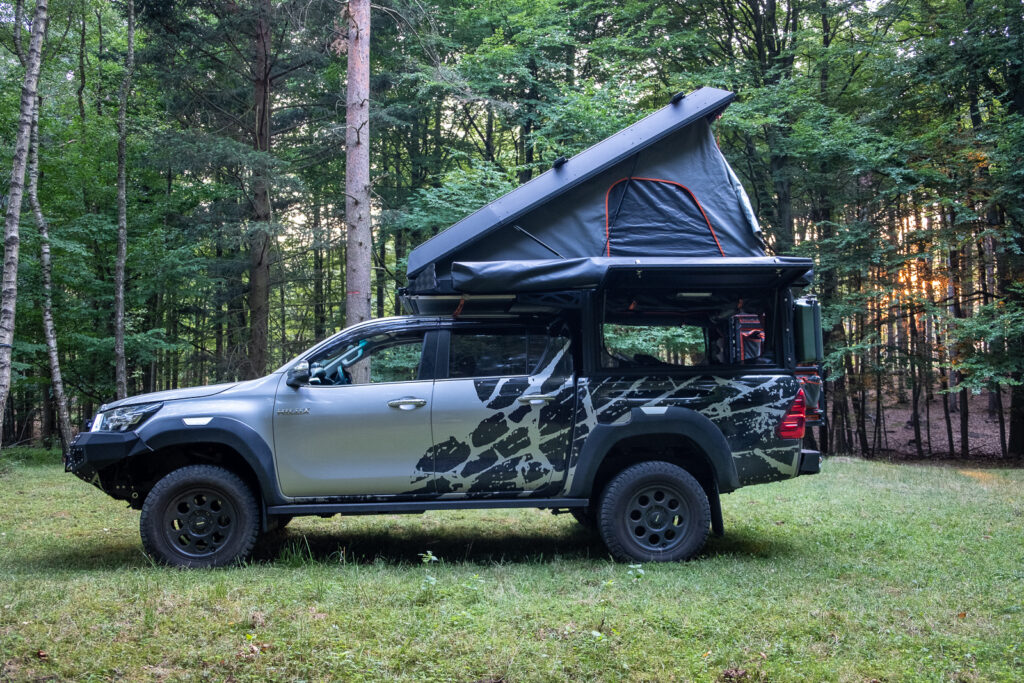 Hilux, který si vzal do testu Honza Koubek, měl navíc k sériovému autu velmi daleko, přitom z příplatkového seznamu automobilky byl vlastně zaškrtnutý jen šedý metalický lak. Jinak šlo o běžné provedení se silnějším naftovým motorem o objemu 2,8 litru a šestistupňovým automatem. Sériovým kusem ovšem zůstalo jen do chvíle, než si auto vzali do parády polští offroadoví specialisté More4x4, kteří zvedli podvozek o 5 cm, vpředu namontovali nová horní ramena náprav, vzadu zesílili listová pera, běžné plastové nárazníky vyměnili za bytelné ocelové, namontovali půlcentimetru tlusté ochranné plechy pod motor, převodovku a další důležité díly, přidali naviják, který utáhne skoro 6 tun a LED světelné rampy, které i tu nejhlubší noc promění v pravé poledne a nakonec Hilux postavili na osvědčená terénní kola Delta 4×4 obutá do pneumatik General Grabber AT3.