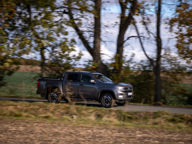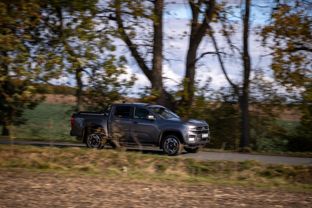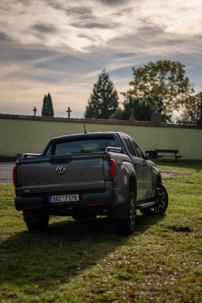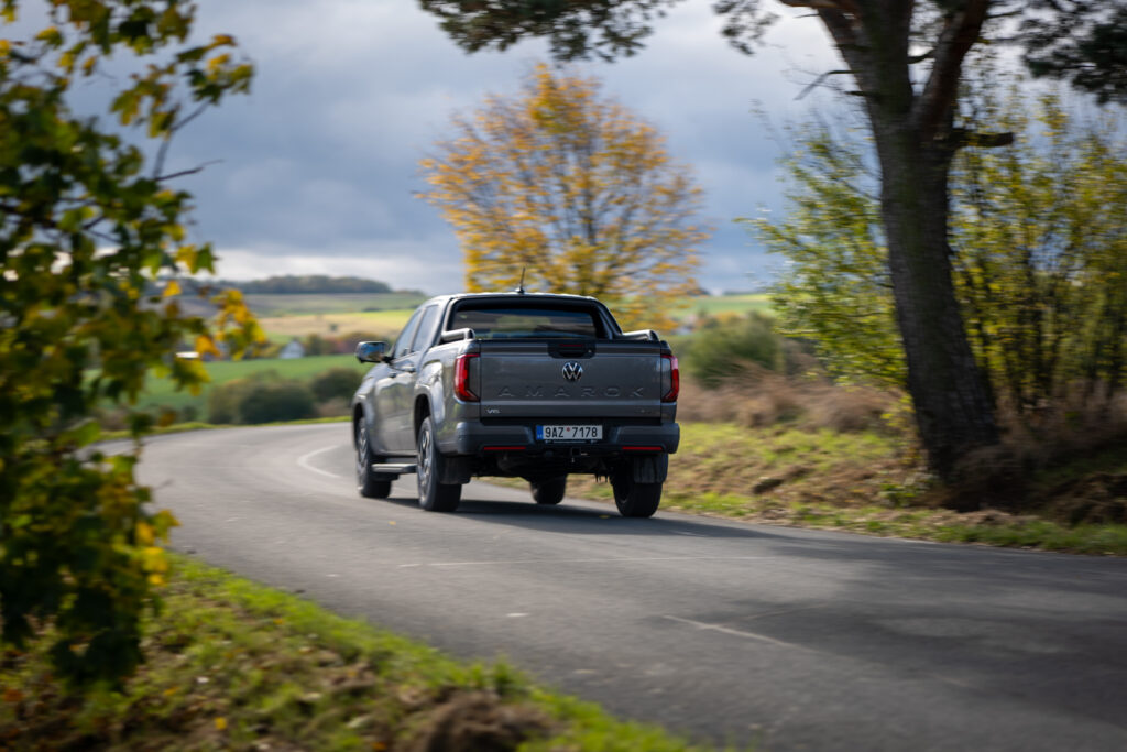 Další velkou pochvalu si zaslouží podvozek, ale pozor, je třeba mít na paměti kontext. Kdo by čekal, že tohle auto pojede stejně pohodlně jako VW Touareg na vzduchovém podvozku, bude pochopitelně hořce zklamán. Tohle je pracovní stroj s tuhým rámem a listovým odpružením zadní nápravy, na rozbitých okreskách nebo záplatovaných městských ulicích se od podvozku ozývají rány a jsou cítit vibrace. Potíž je, že šestiválcový model se prodává rovnou na 18” kolech, která jsou těžká a zvyšují neodpruženou hmotnost. Čtyřválec na šestnáctkách jezdí znatelně klidněji. Příplatkové dvacítky tedy příliš nedoporučujeme. Honzovy stížnosti pramenily hlavně z toho, že si ještě celkem dobře pamatuje jak jezdila první generace, která ve své době ohromovala tím, že se chovala spíš jako velký osobák, než jako pick-up. Je ale třeba říct, že tady nejde o žádnou katastrofu a na hladkých silnicích jede Amarok nadmíru pěkně, zejména vzhledem k tomu, že jeho terénní schopnosti jsou výrazně lepší. Nájezdové a odjezdové úhly se zlepšily, brodivost stoupla z 50 na 80 cm a dá se ještě vylepšit vyvedením výfuku vzhůru, za příplatek můžete mít bytelnou ochranu podvozkových skupin a když pak obujete pořádné pneumatiky, Amarok se nelekne ani docela těžkého terénu. Praktičnost auta zvyšuje příplatková roleta na korbu, která už se dá ovládat elektricky z dálkového ovládání a tudíž můžete korbu zamknout a nebát se o svůj náklad.
