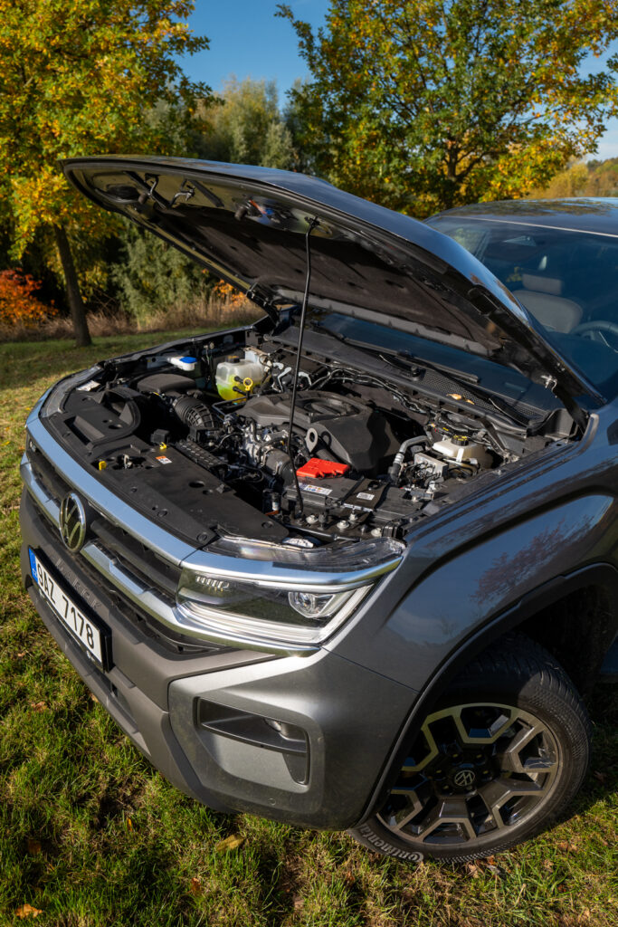 Pod kapotou Amaroku vrčí třílitrový vidlicový šestiválec značky Ford. Ve srovnání s menším nabízeným motorem, což je čtyřválcový dvoulitr, je výrazně kultivovanější, tišší a samozřejmě podstatně silnější. Výkon 241 koní nezní nijak závratně, ale krouťák šestiválce propůjčuje autu dostatečnou pružnost ve většině situací. Není to auto, které by vás nutilo šlapat příliš razantně na plyn, ale jeho zásoba síly je uklidňující a Honza Koubek se přiznal, že přesně to mu velmi vyhovovalo. Samozřejmě se musíte připravit na trochu vyšší spotřebu, při klidné jízdě se pohybuje kolem 11 litrů, při ostřejší i kolem 14 litrů nafty. Nakonec, mluvíme tu o pick-upu s hmotností přes 3,3 tuny a s pohonem všech kol, takové auto prostě za 7 litrů jezdit nebude.