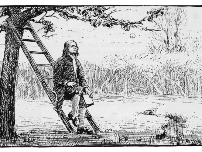 Říká se, že slavný matematik objevil kouzlo gravitace poté, co mu na hlavu spadlo jablko z jabloně, pod kterou zrovna seděl a hluboce přemýšlel. Poprvé se příběh o jablku objevil v biografii Newtona, kterou napsal jeho přítel William Stukeley v roce 1792. Jenže v knize je situace popsána poněkud méně romanticky: „Napadl ho pojem gravitace… při příležitosti pádu jablka, když seděl v kontemplativní náladě,“. Historici se tak domnívají, že Newton zkrátka jen viděl padat jablko a začal nad tímto jevem přemýšlet. V žádném záznamu o jeho životě se nepíše, že by ho přitom jablko mělo udeřit do hlavy.