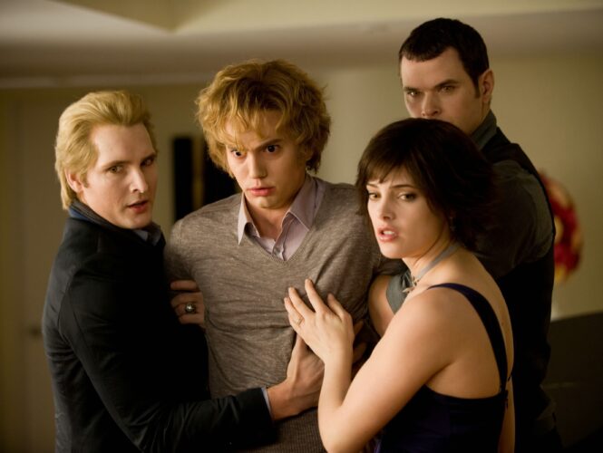 Stmívání je romantický film z roku 2008 o upírech natočený podle knižní předlohy od Stephenie Meyer. Obyčejná dívka Bella se zde zamiluje do upíra Edwarda, který náhodou chodí na stejnou školu. Edward má svoji upíří rodinu, kdy jeho adoptivní otec je Carlisle Cullen a adoptivní matka Esme Cullen. Podle knižní předlohy upíři zůstávají „zaseknutí“ ve věku, kdy byli kousnutí, a od té doby nestárnou. V knize je tedy Carlisleovi 23 let a Esme 26 let. Jenže už od prvního filmu této ságy na tento věk nevypadají, v posledním dílu Twilight sága: Rozbřesk – 2. část z roku 2012 navíc vypadají ještě starší, na čemž měl pochopitelně svůj podíl i časový odstup mezi natočením prvního a posledního dílu ságy.