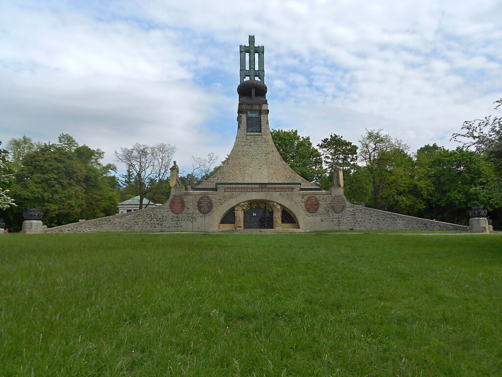 K bitvě u Slavkova odkazuje Památník Mohyla míru, vedle které můžete zhlédnout multimediální expozici Bitva tří císařů. Nový pavilon z roku 2010 je zčásti ukrytý pod zemí a jeho exteriér ukazuje dominanty slavkovského bojiště. Expozice přiblíží slavkovskou bitvu z různých pohledů, ať kronikářů, vojáků i diplomatů, historiků, spisovatelů nebo filmařů.