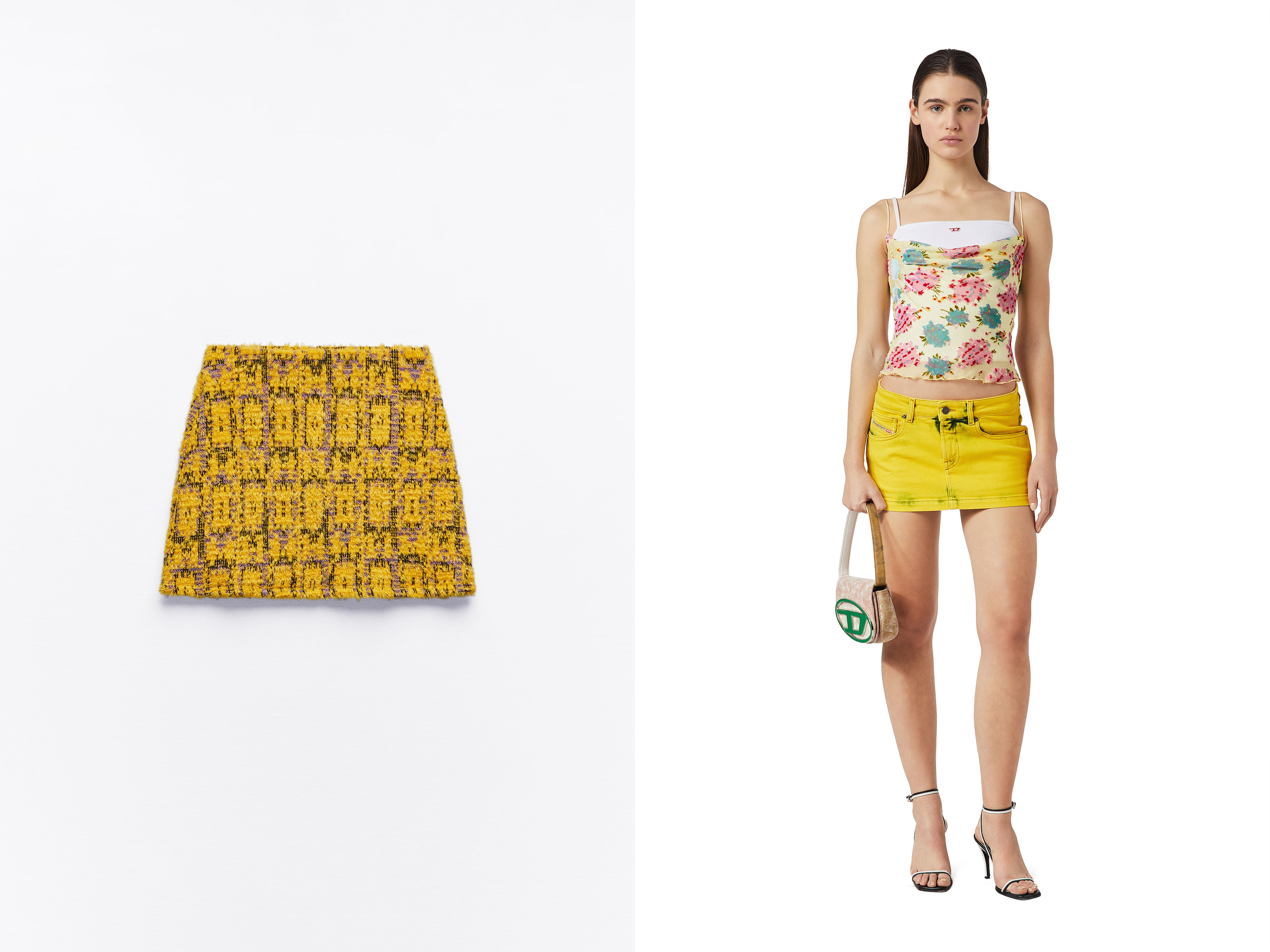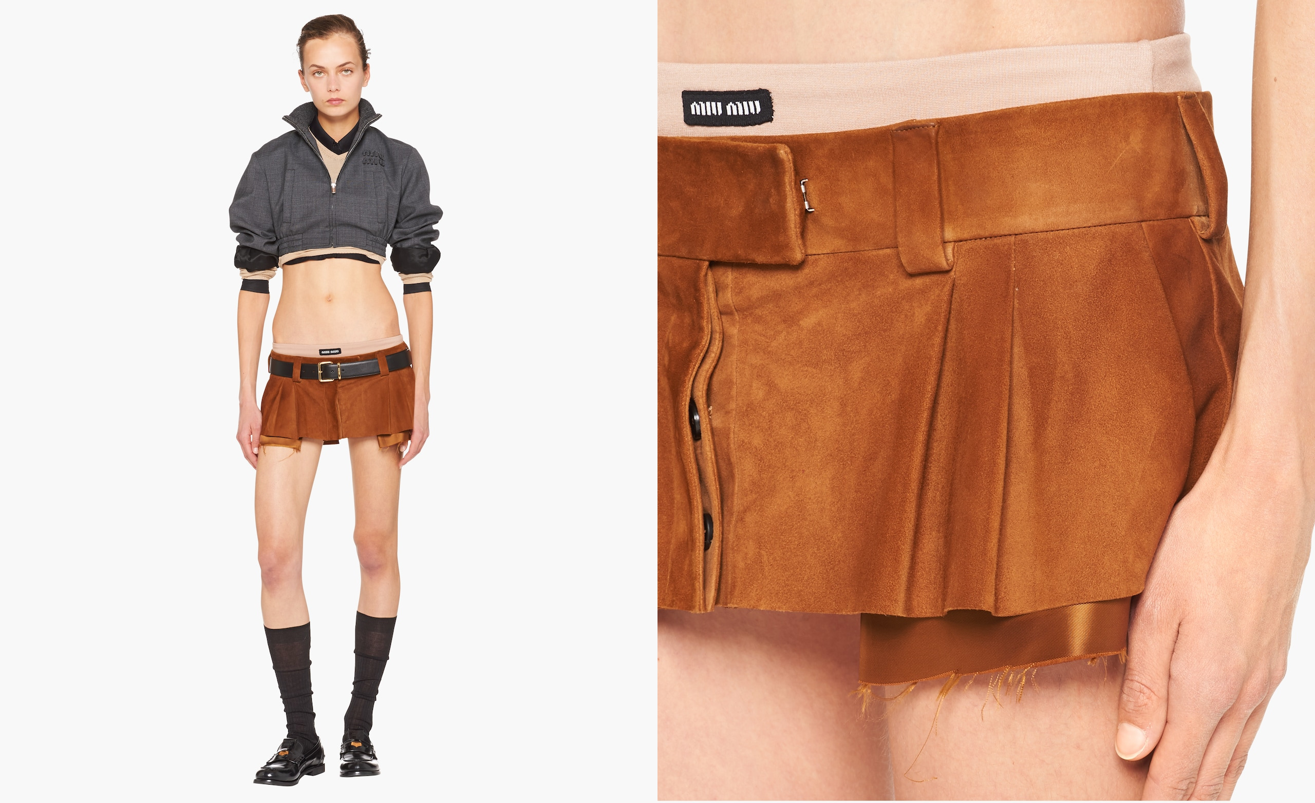 Miu Miu je dceřiná firma společnosti Prada, cílí na mladší generaci a v jejím repertoáru je to rozhodně znát. Mikro sukni představila loni v říjnu při uvedení kolekce pro nadcházející jarní sezonu a díky pozitivním ohlasům se na ni můžete těšit i příště. Spolu s krátkou bundičkou, košilí či topem tvoří duo, v kterém vás na ulici nikdo nepřehlédne, ale dovolit si jej mohou jen majitelky bezchybné postavy.
