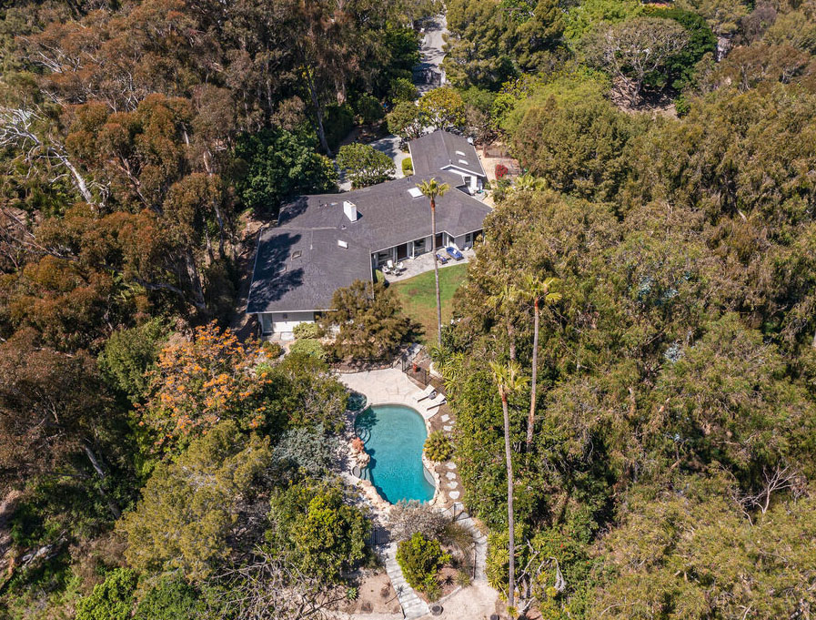 Dům, zasazený za branami na konci slepé ulice, na odlehlém téměř dvouakrovém pozemku plném vzrostlých stromů a zahrad, je v seznamu označován jako "jedno z nejlépe střežených míst Malibu". Původně je nemovitost postavená v roce 1959, ale v průběhu let byla několikrát renovována.