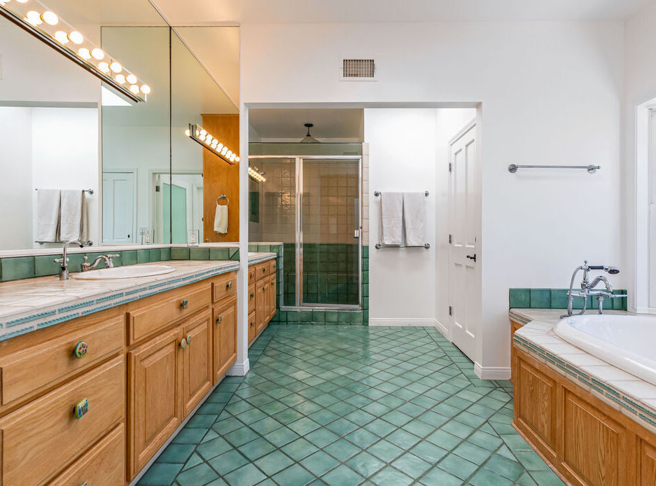 Luxusní dům má pět ložnic a stejný počet koupelen na 4 325 čtverečních stopách jednoúrovňového obytného prostoru s podlahami z tvrdého dřeva a klenutými dřevěnými trámovými stropy.