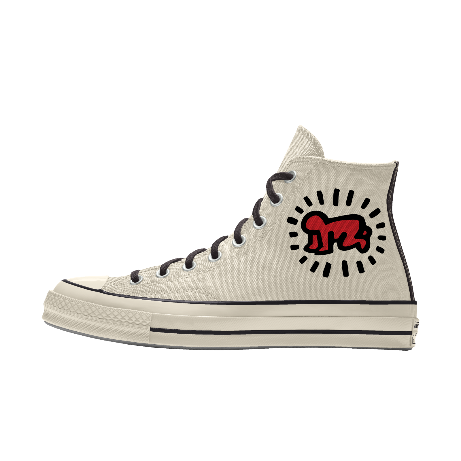 Co se týká samotného Keitha, tenisky s jeho designy snad už mají všichni velcí výrobci sneakers. On sám by určitě dnes sneakerhead byl. Tedy byl už v 80. letech, ale tehdy se tomu tak ještě neříkalo. Na fotkách ho můžete vidět často v basketbalových modelech Nike, Adidas, ale právě i v converskách, které jsou pokryté barvou a někdy se také objevují na výstavách jeho děl.