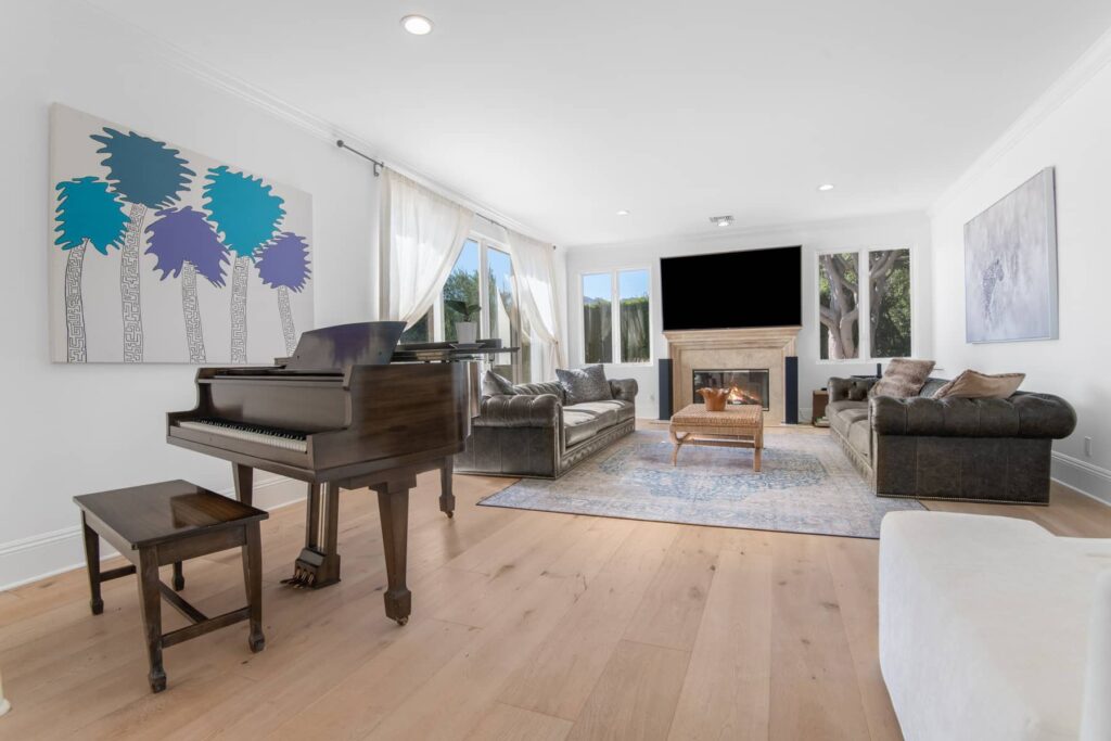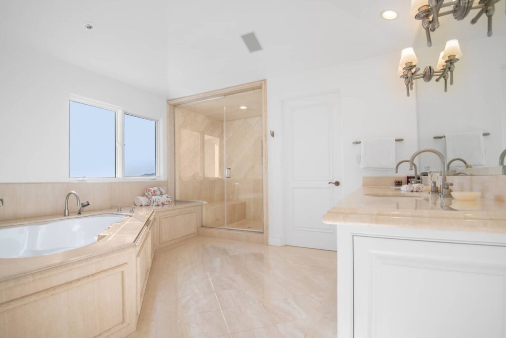 Interiér je laděný do středomořského stylu, v místnostech tedy převládá bílá barva a nechybí ani francouzská okna, díky kterým jsou vnitřní prostory krásně prosvětlené. Návštěvy může zpěvačka pohostit ve formální jídelně, obýváku s krbem nebo pokoji s kulečníkovým stolem. A s přespáním si hosté nemusí lámat hlavu. Obyvatelům domu je k dispozici šest ložnic a stejný počet koupelen. Za zmínku stojí samozřejmě i nádherná zahrada, jejíž dominantou je vyhřívaný bazén s vířivkou.