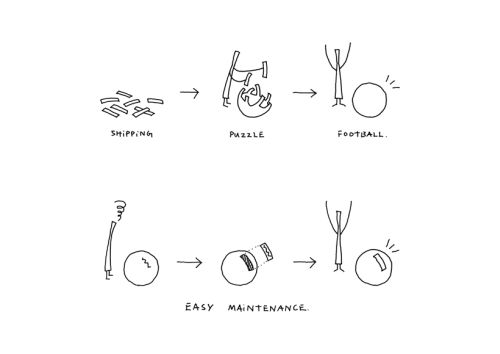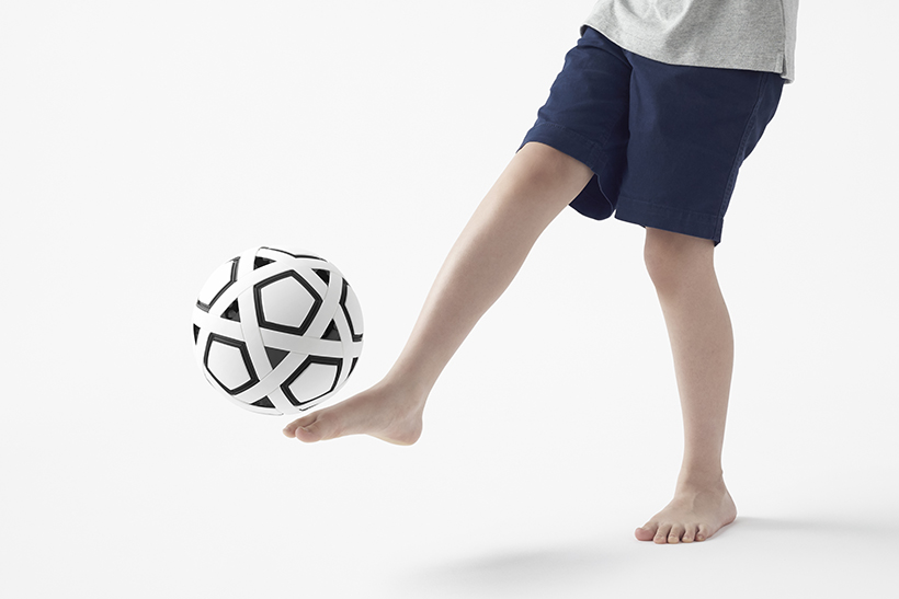Míč, který je převážně z recyklovatelného polypropylenu, se skládá ze tří různých komponentů. Celkem třicet dlouhých bílých pruhů svým propojením nejprve vytvoří kostru balonu připomínající florbalový míček a vzniklé mezery následně vyplní černé držáky na bílé pětiúhelníkové výplně. Hlavní výhodou je podle společnosti Nendo skutečnost, že v případě poškození lze vyměnit každou z 54 částí skládačky.