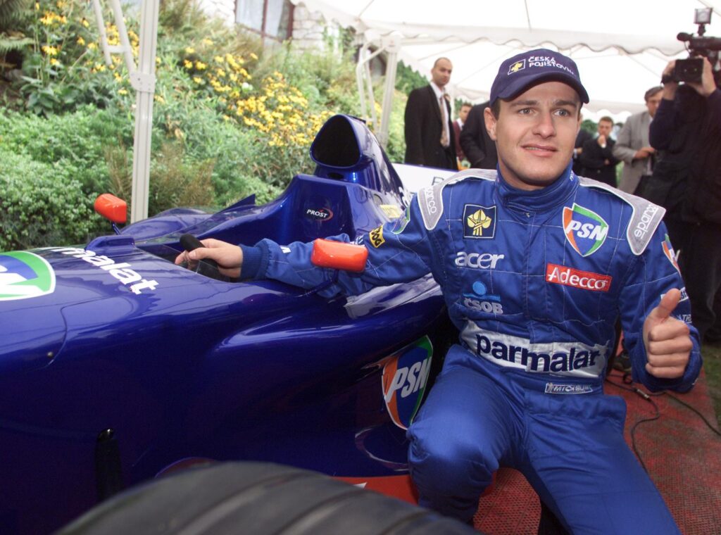 Tomáš Enge pózuje u monopostu stáje Prost na sponzorské akci před svou premiérou ve Formuli 1. Foto: Michal Růžička / MAFRA / Profimedia