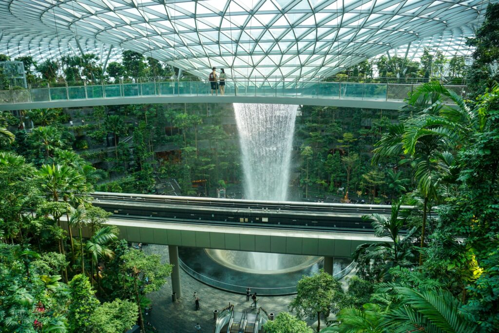 Vodopád uprostřed letiště Jewel Changi má 7 pater a měří 40 metrů. Jde o zábavní a obchodní komplex s přírodní tématikou. Jeho středobodem je nejvyšší krytý vodopád na světě Rain Vortex, který je obklopen terasovitým lesním prostředím. Vzhledem k tomu, že vodopády a fontány jsou často spojovány s mincemi a štěstím, mnoho lidí do vodopádu házelo mince, ale tamní zaměstnanci radí to nedělat. Letiště zahrnuje zahrady, atrakce, hotel a tři stovky maloobchodních a stravovacích zařízení.