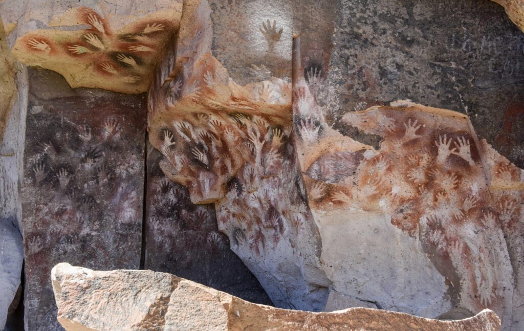 V originále Cueva de las Manos je jeskyně s prehistorickými nástěnnými malbami v patagonské argentinské provincii Santa Cruz. Jeskyně se nachází v údolí řeky Pinturas. Pochází z doby asi 10 tisíc let před naším letopočtem a je odkazem minulých generací. Na stěnách se nachází stovky barevných rukou roztroušených po celé jeskyni. Pro barvy byly použity různé pigmenty, například oxidy železa pro červenou a fialovou, kaolin pro bílou, natrojarosit pro žlutou a oxid manganu pro černou.