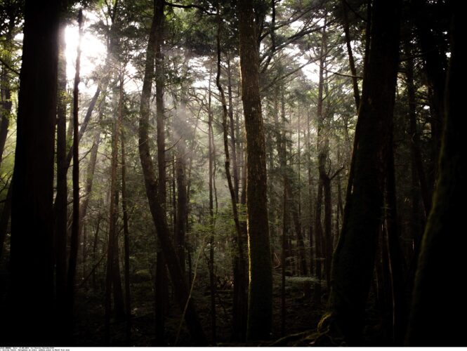 Tento zdánlivě klidný les na úpatí hory Fuji má extrémně pohnutou historii. Aokigahara, hovorově známý jako „Sebevražedný les“, je druhým nejoblíbenějším místem pro sebevraždy na světě (po sanfranciském Golden Gate Bridge) – jen v roce 2010 se zde pokusilo vzít si život 247 lidí. A 54 z nich uspělo. Někteří říkají, že je tento jev spojením lesa a démonů. Jiní poukazují na hustotu stromů, které tlumí zvuk a lidé se v něm tak velmi snadno ztratí. Mnoho turistů si cestu dokonce značí páskou nebo provázkem, aby lépe našli cestu. To dodává lesu ještě děsivější atmosféru.