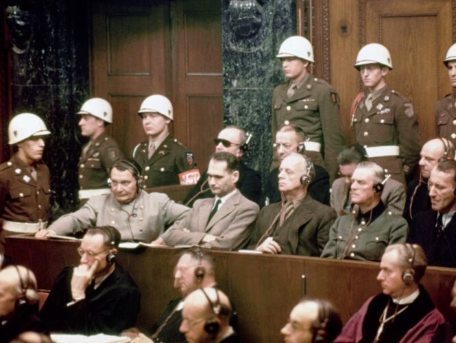 Soudní proces s nacistickými pohlaváry, který se symbolicky uskutečnil v německém Norimberku, byl vyvrcholením snahy potrestat osoby odpovědné za válečné zločiny spáchané nacistickým Německem. Takzvaný Norimberský proces začal právě 18. října 1945. Rozsudek trestu smrti byl vynesen nad dvanácti čelními představiteli nacistického režimu. Deset z nich bylo popraveno 16. října 1946.