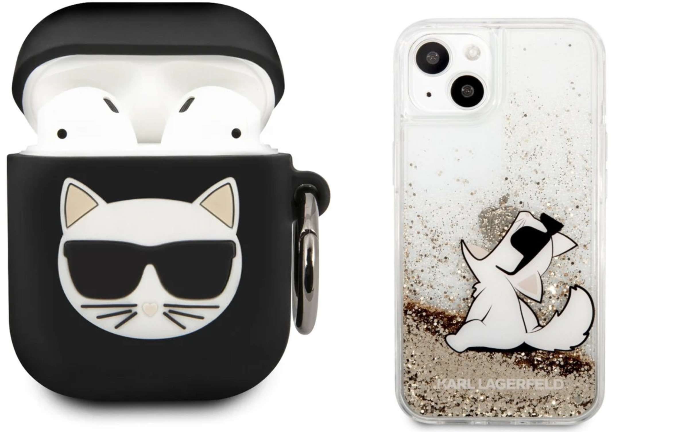 Zleva: pouzdro na AirPods Karl Lagerfeld (prodává CZC), 339 Kč; obal na iPhone 13 Karl Lagerfeld (prodává iPouzdro), 549 Kč