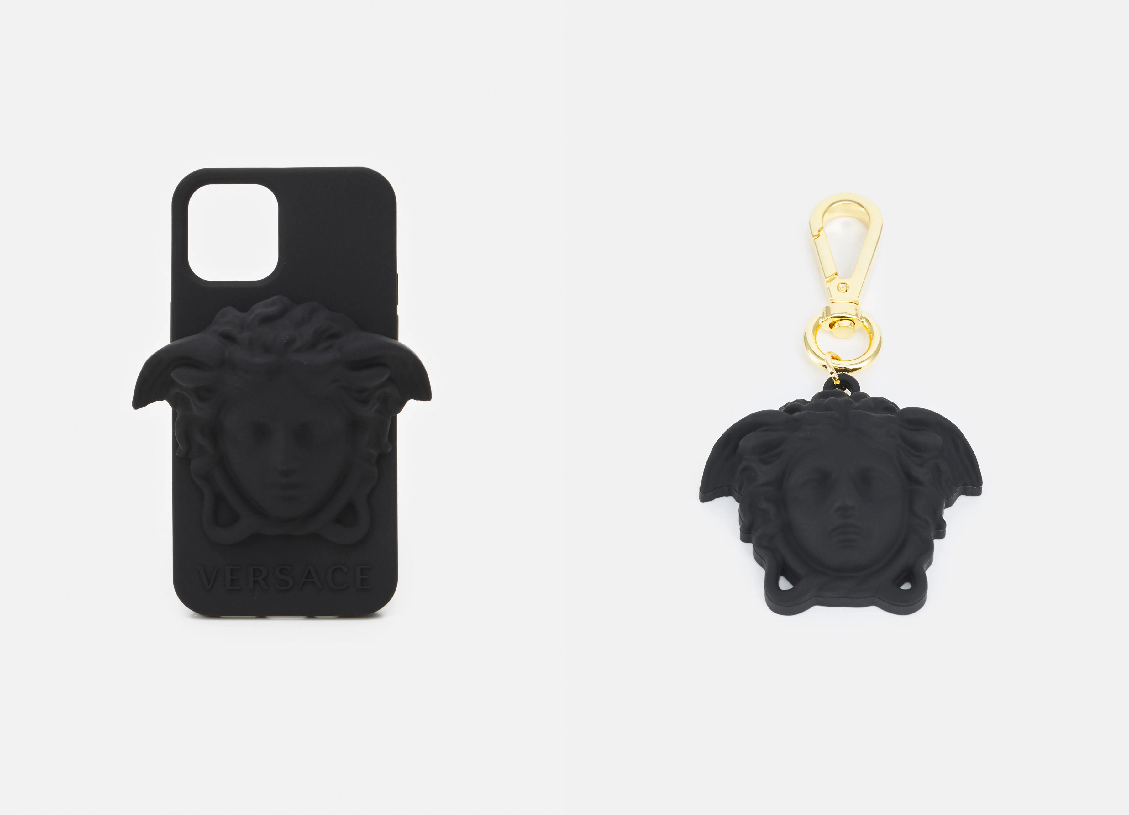 Zleva: obal na iPhone XS Max Versace (prodává Zalando), 2640 Kč; klíčenka Versace (prodává Zalando), 2040 Kč