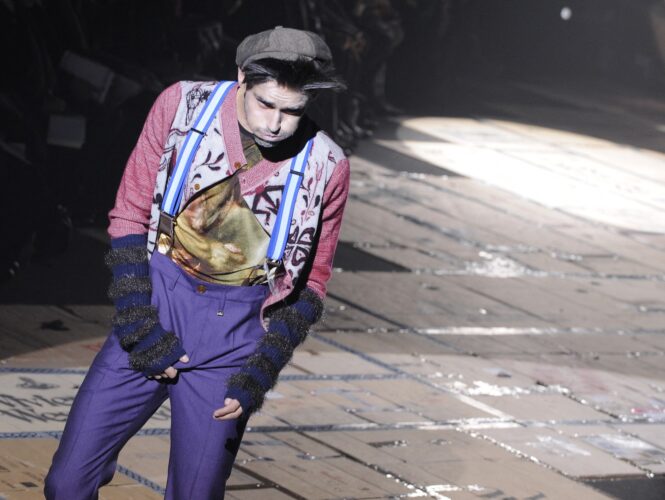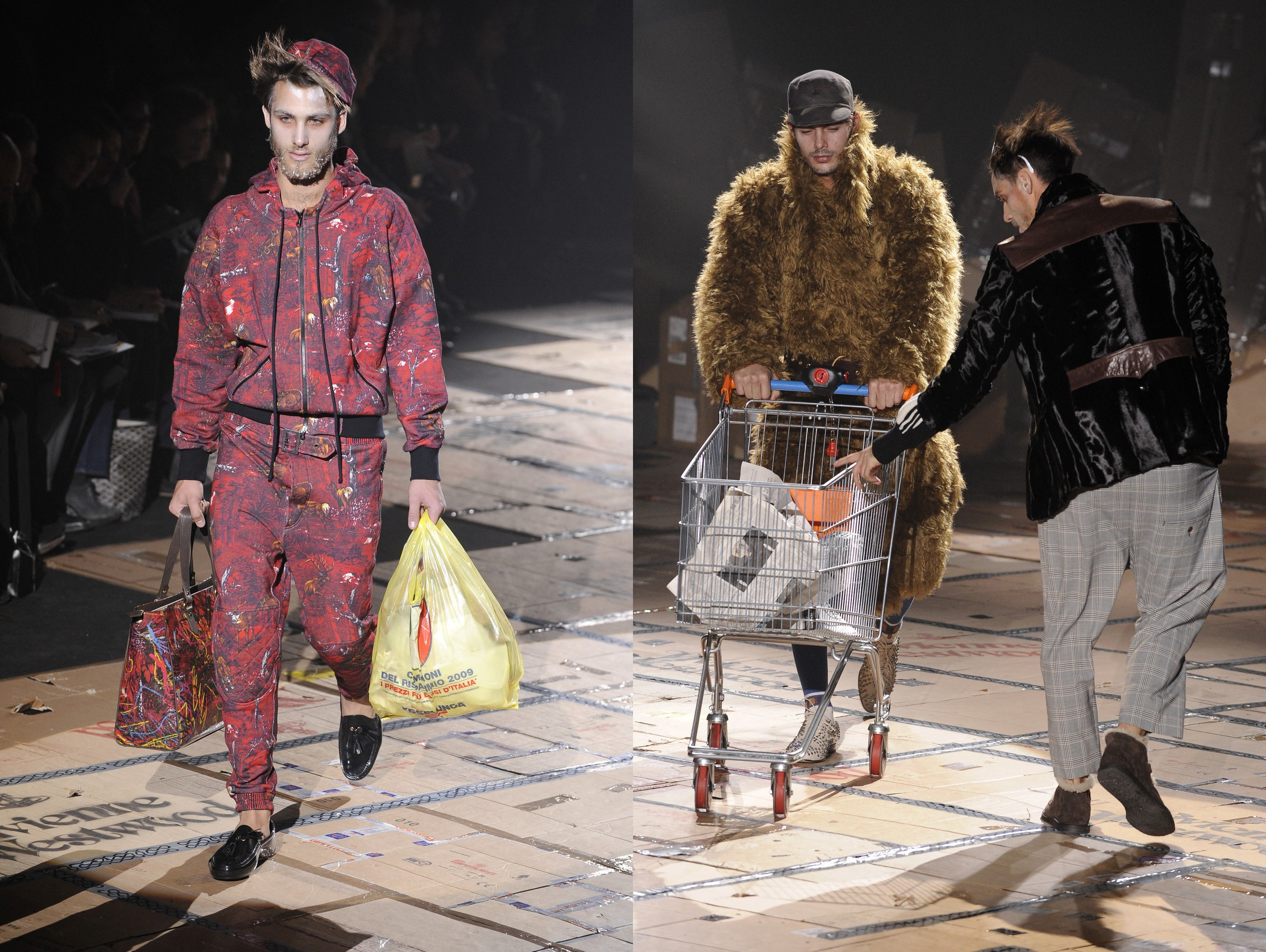 Tyhle snímky nepocházejí z ulic vyloučené čtvrti, ale z Fashion Weeku v Miláně. Návrhářka Vivienne Westwood vsadila v roce 2010 na styl vagabundů
