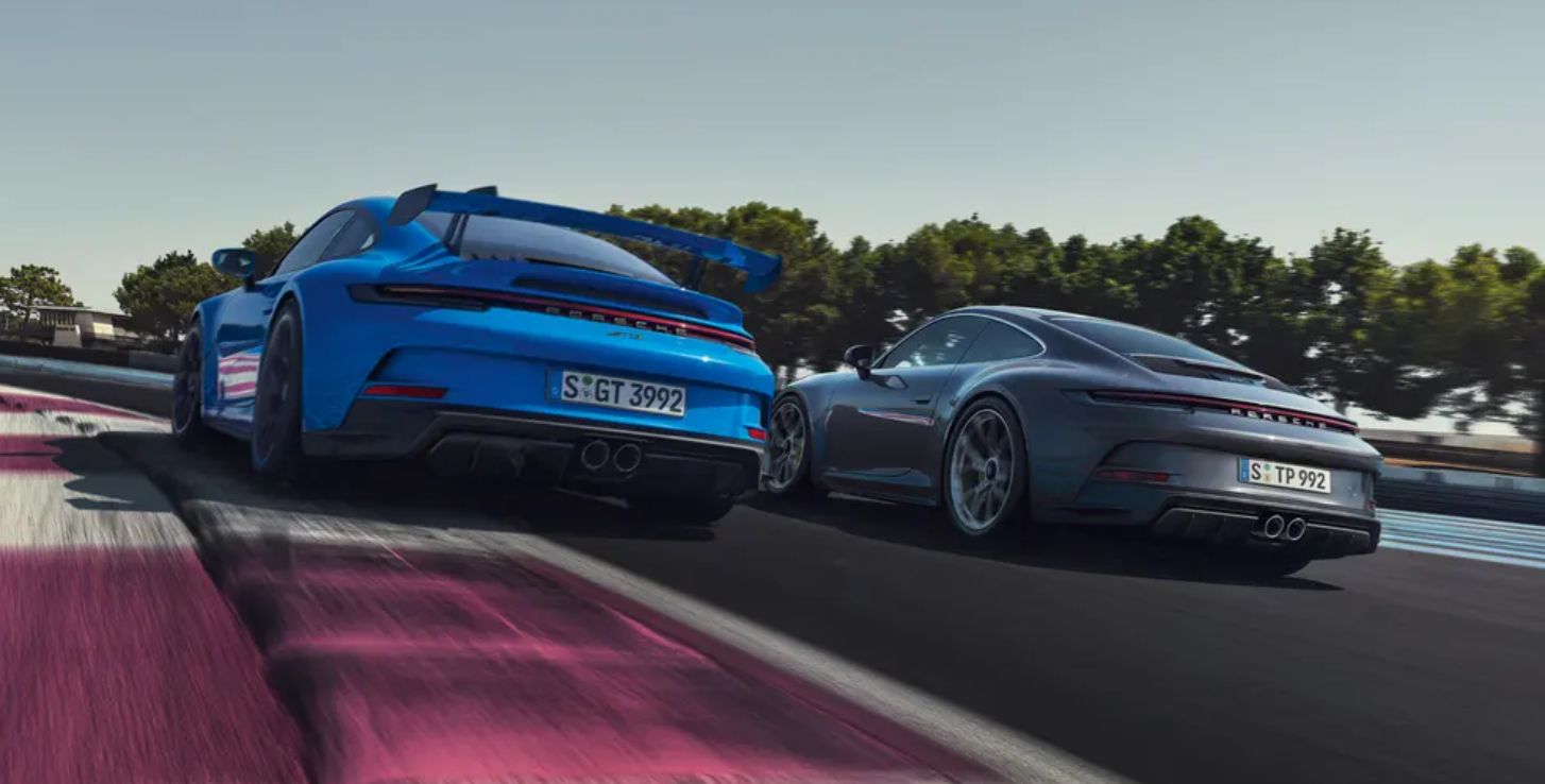 Porsche 911 je na sportovní auto nezvykle univerzální, dokáže se nenuceně posouvat městským provozem, cestovat na dlouhé vzdálenosti, ale samozřejmě i pobavit na okresce. A pokud se nejraději bavíte na uzavřených okreskách, které vedou dokola a říká se jim závodní okruh, Porsche má pro vás právě GT3. Je to 911 dotažená tak blízko závodnímu speciálu, jak to jen předpisy pro silniční provoz umožňují. Novou verzi nepochybně poznáte podle nového zadního spoileru, uchyceného tzv. labutími krky. Nové uchycení zlepšilo přístup chladícího vzduchu k motoru, spoiler společně s difuzorem pak zvýšily přítlak o 50 %. Zkušenosti ze závodních speciálů jsou znát – ovlivnily navíc i nové zadní zavěšení typu multilink, vpředu jsou nové dvojité lichoběžníky s díly ze závodních RSR a Cup, zatímco všechny ostatní sériové 911 mají levnější, ale jednodušší MacPhersony. Rozšířil se rozchod, zvětšily brzdy, na přání mohou být karbonkeramické, a přes všechny tyto úpravy nestoupla hmotnost – zůstává na úrovni přechozí generace GT3, tedy zhruba kolem 1.430 kg. Zadní sedačku byste tudíž hledali marně, stejně jako část hlukové izolace, přestože klimatizaci a infotainment samozřejmě dostanete. Auto má tenčí skla, karbonovou kapotu a další odlehčující prvky.