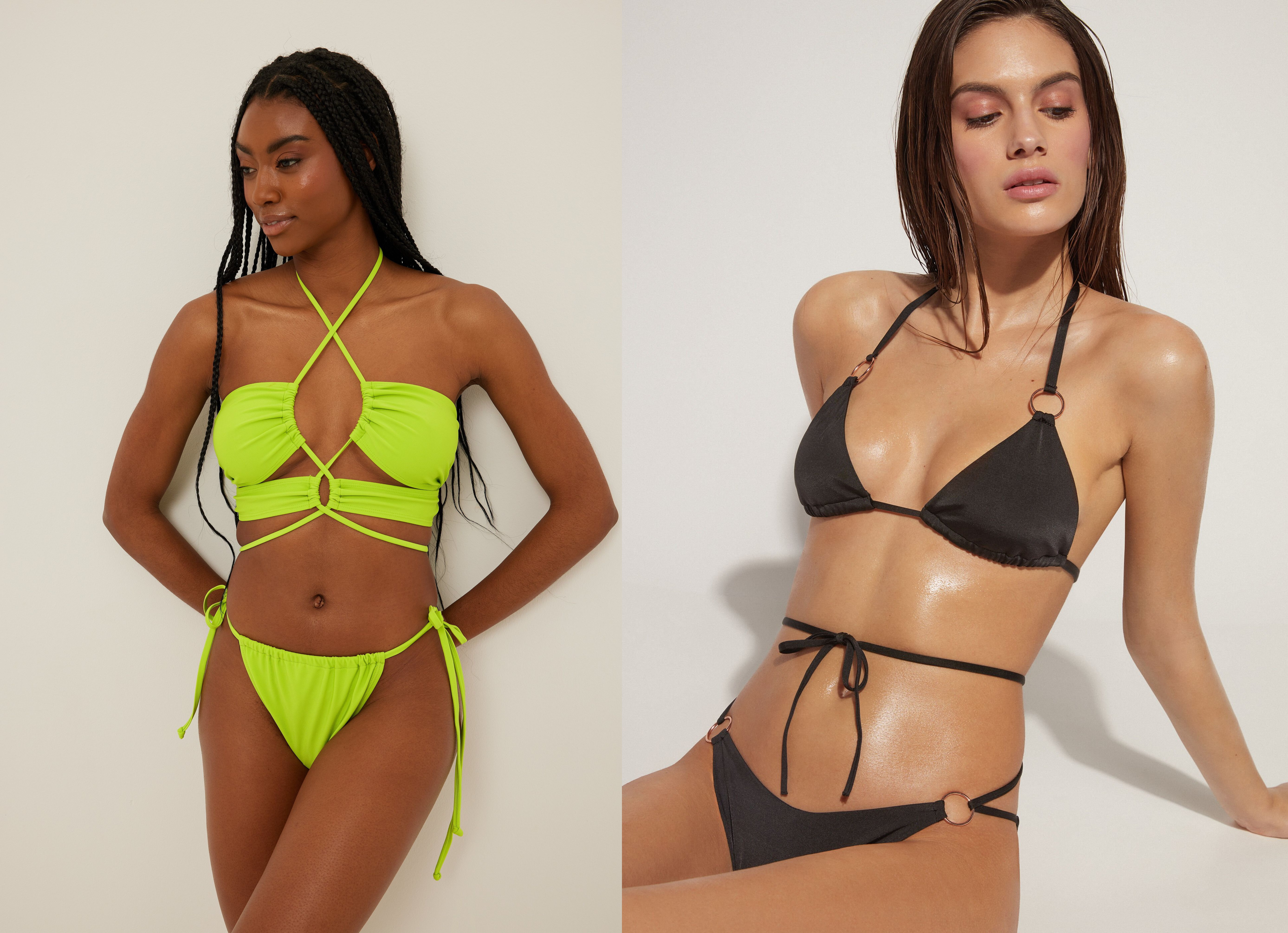 Zleva: NA-KD, vršek 659 Kč, spodek 419 Kč. Calzedonia, vršek 850 Kč, spodek 450 Kč