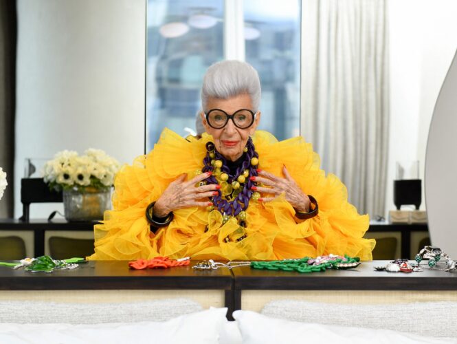 Podnikatelka, interiérová designérka a hlavně módní ikona oslavila loni významné výročí. Na narozeninovém dortu měla neuvěřitelných sto svíček, ale z veřejného života se zatím naštěstí stáhnout nehodlá. Charakteristickým znakem Iris Apfel jsou výrazné brýlové obruby, extravagantní šatník a přehršel šperků. Čím víc, tím líp.