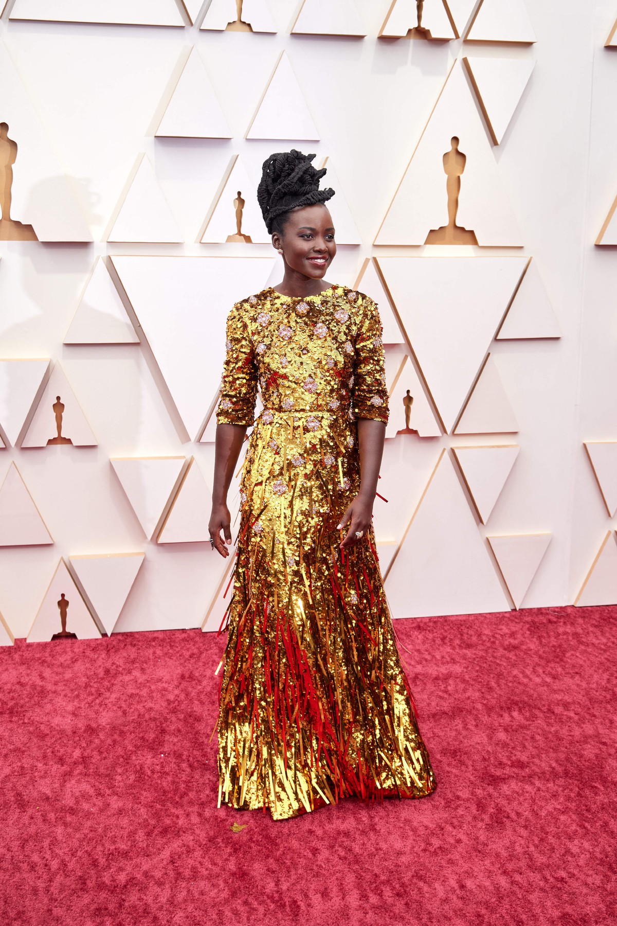 Herečka a režisérka s keňskými kořeny patřila bezpochyby k největším kráskám slavnostního večera. K dokonalé image jí pomohla róba z repertoáru módního domu Prada, která byla doslova posetá flitry. Ty delší z šatů vyčnívaly a během chůze proměnily Lupitu Nyong’o (39) v živoucí ohňostroj. Zkrátka dech beroucí podívaná.