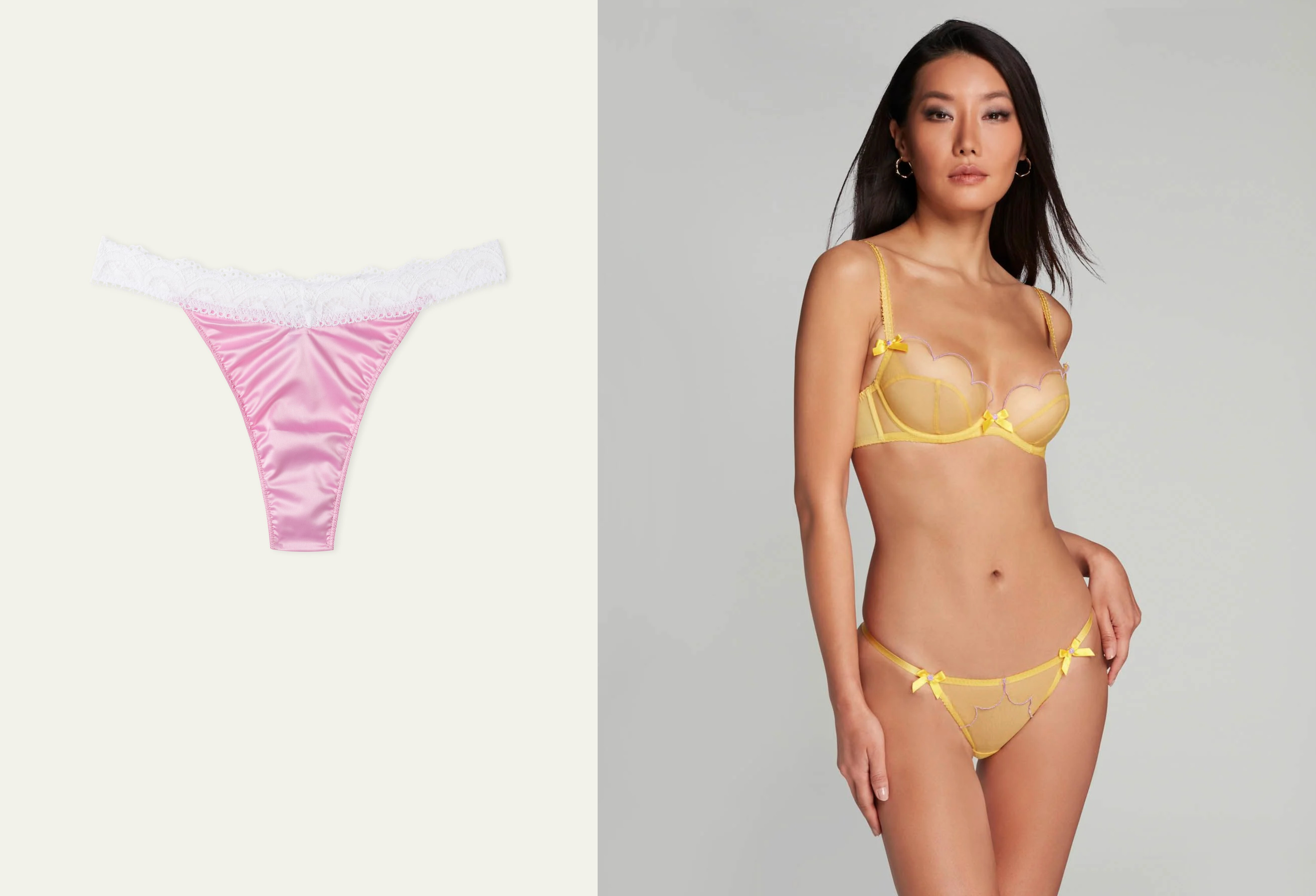 Zleva: tanga Tezenis, 169 Kč; tanga Agent Provocateur, 1119 Kč
