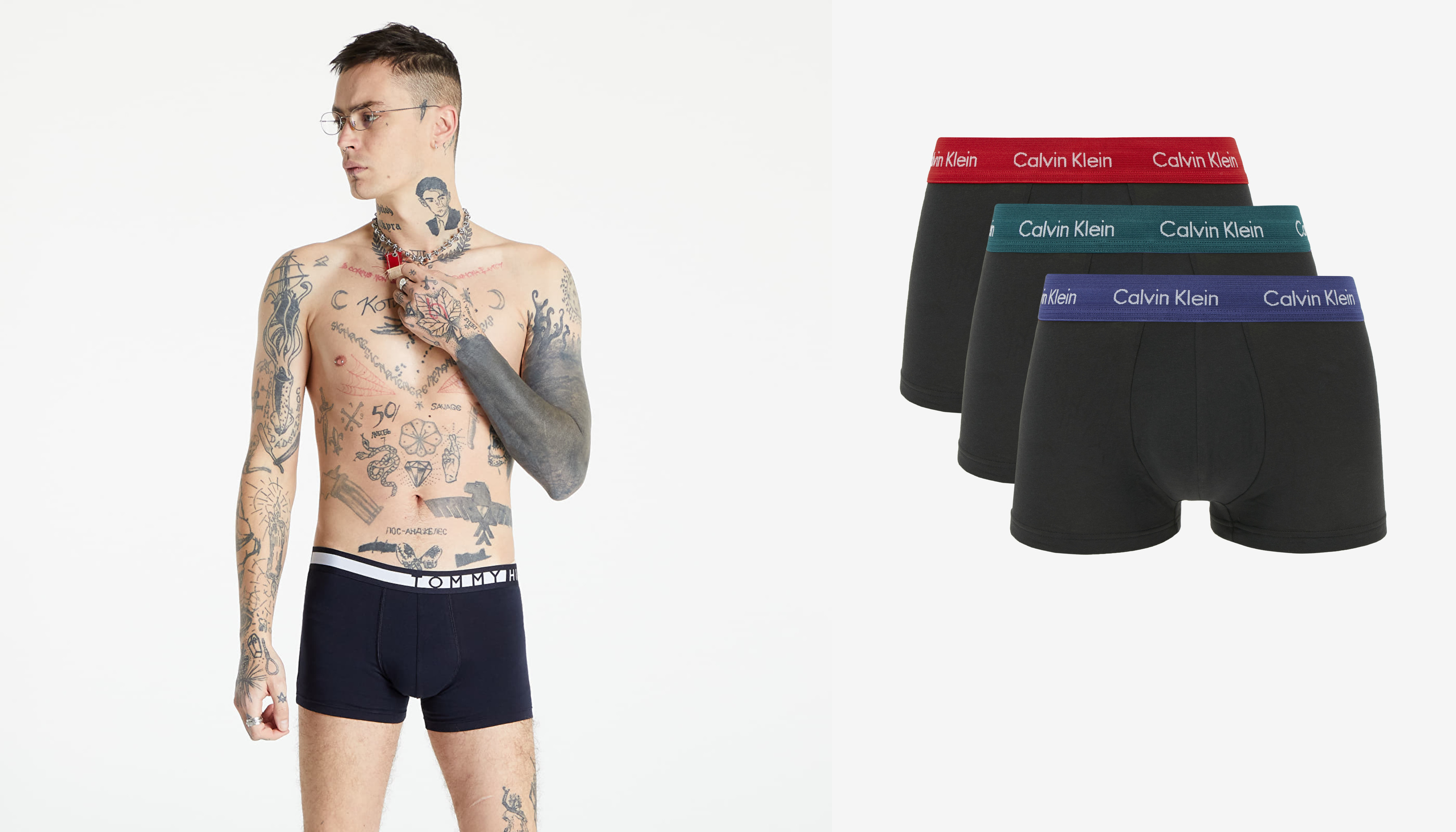 Zleva: Tommy Hilfiger (prodává Footshop), 880 Kč; Calvin Klein (prodává Bibloo), 823 Kč za 3 kusy