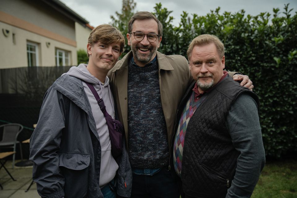 Petr Uhlík, Ondřej Sokol a Václav Kopta při natáčení seriálu