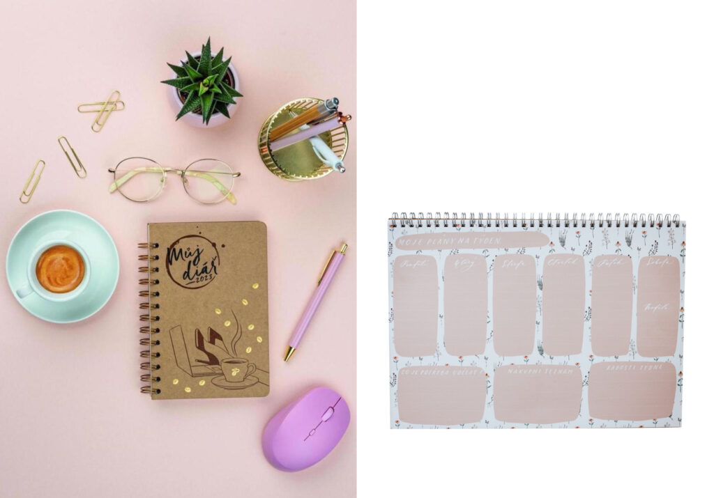 Zleva: diář pro rok 2023 s týdenním kalendářem Tchibo, 499 Kč; týdenní plánovač Be Nice (prodává Benice-shop), 400 Kč