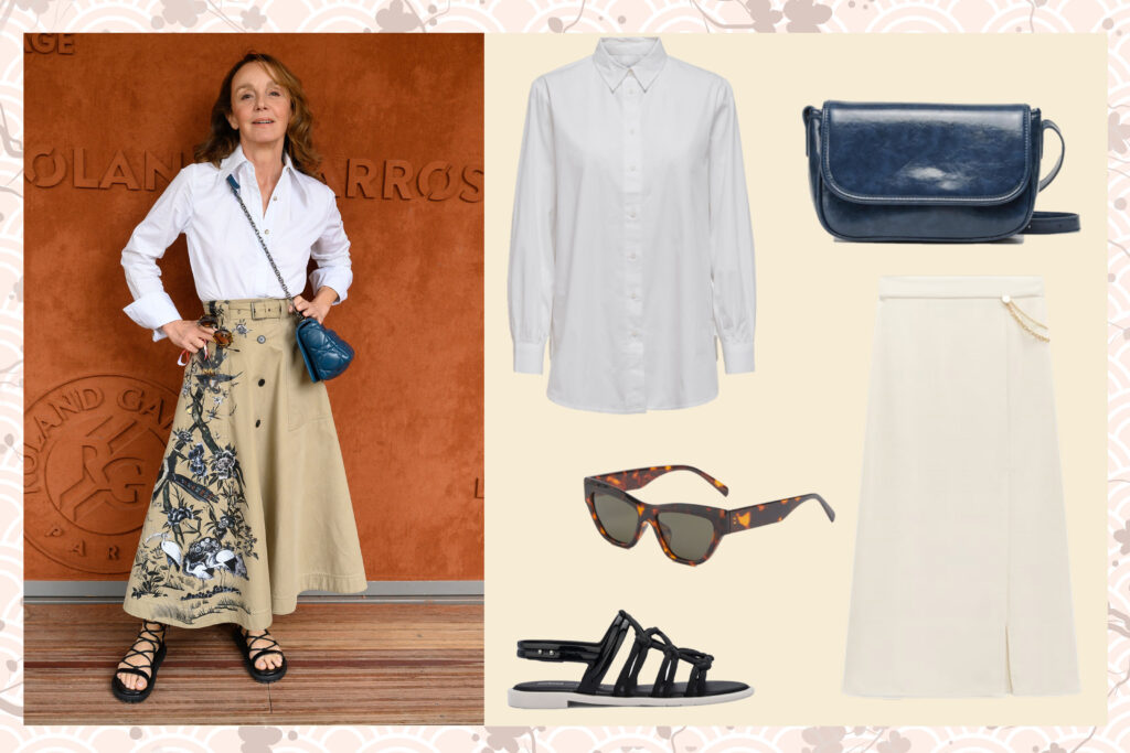 Philippine Leroy-Beaulieu na French Open. Pro takovou kombinaci shánějte: Bílá dámská košile ONLY, zoot.cz, 575 Kč; Áčková midisukně, Zara, zara.com, 499 Kč; Kabelka Jenny Fairy, ccc.eu, 899 Kč; Sandálky Melissa, zoot.cz, 1.519 Kč; Polarizované sluneční brýle, H&M, hm.com, 599 Kč