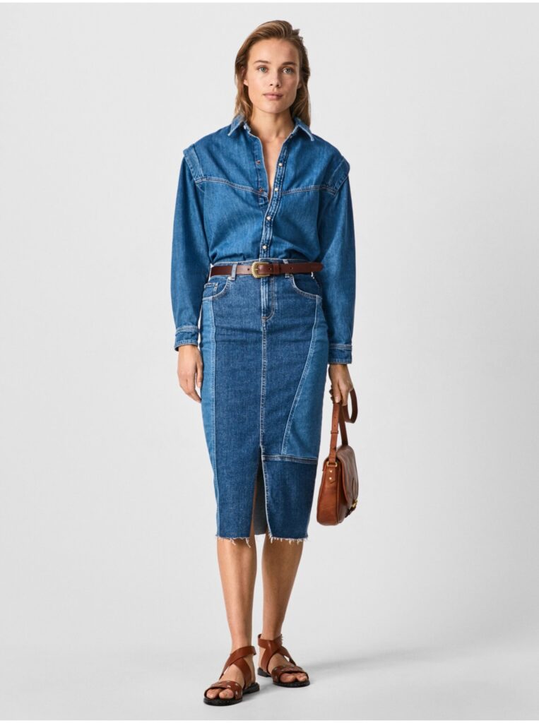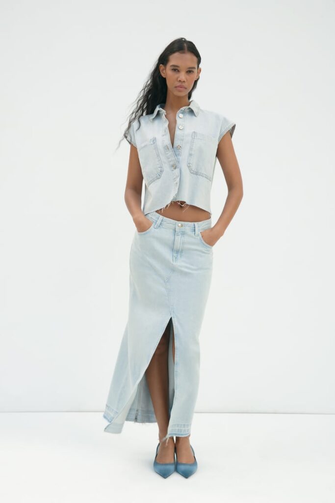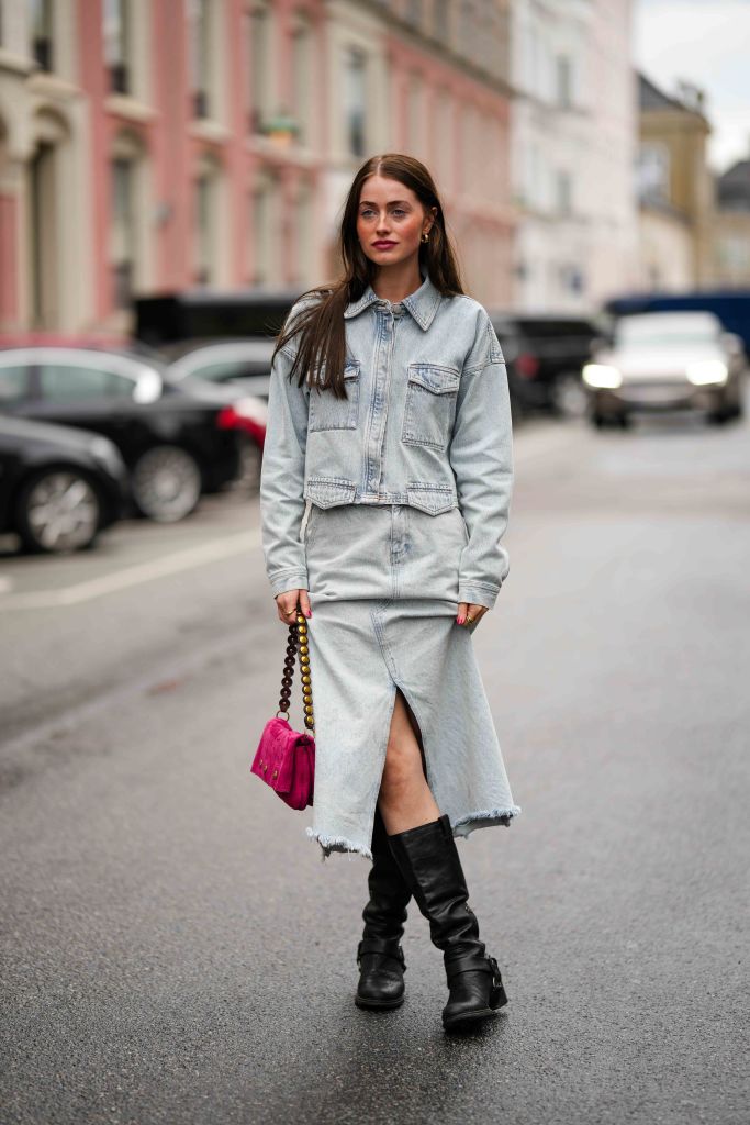 S džínovou sukní se můžete odvázat a kombinovat ji klidně i se stejnobarevným denimem.