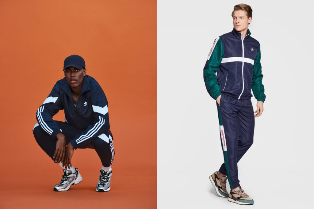 Zleva: souprava, info o ceně v obchodě, Adidas (prodává Anson’s); souprava 3.145 Kč, Sergio Tacchini (prodává Modivo)