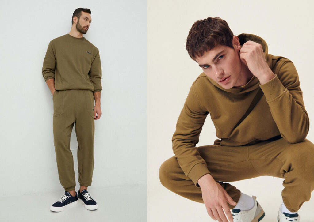 Zleva: souprava 1.399 Kč, Fila (prodává Answear); mikina 699 Kč, tepláky 399 Kč, Reserved