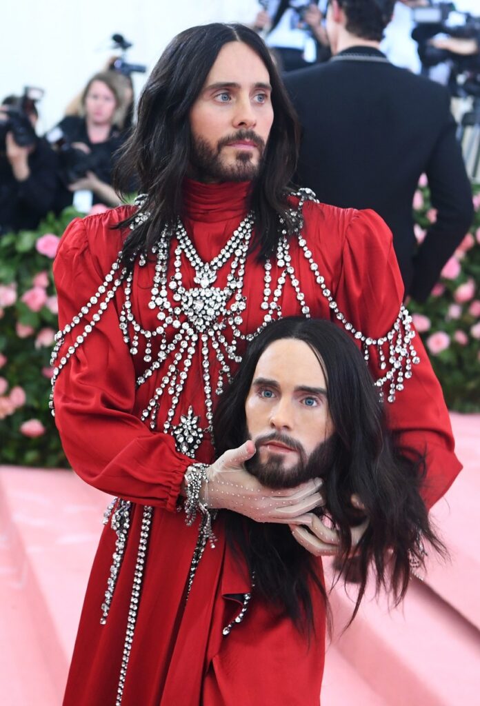 Jared Leto, herec a frontman 30 Seconds To Mars, si šaty nebo sukně oblékl už při mnoha příležitostech a je na to náležitě hrdý. Na Twitteru jednou napsal, že skuteční muži sukně nosí. Největší pozornost sklidil na Met Gala v roce 2019. Ukázal se v hedvábných červených šatech s vysokým límečkem od značky Gucci. Svůj vzhled doplnil ramenními vycpávkami, drahokamy posázeným řetízkem na těle a vlastní hlavou, kterou nosil jako doplněk. Jared Leto se ale nebojí jít do extrémů, a to jak v módě, tak ve filmech, kde se umí zpěnit k nepoznání. Umí to ale dělat s takovou grácií, jako nikdo druhý.