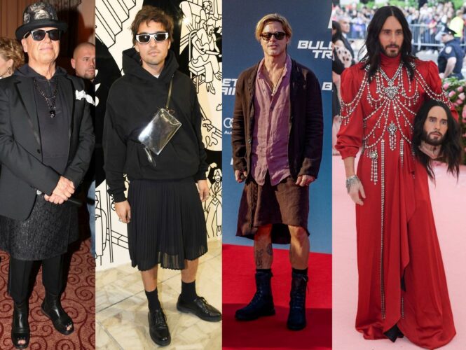 Naposledy v sukni mezi lidi vyrazil Brad Pitt. Připravili jsme pro vás seznam slavných mužů, kteří se nebojí rozbourat stereotypy a obléknout si na sebe, co se jim líbí.