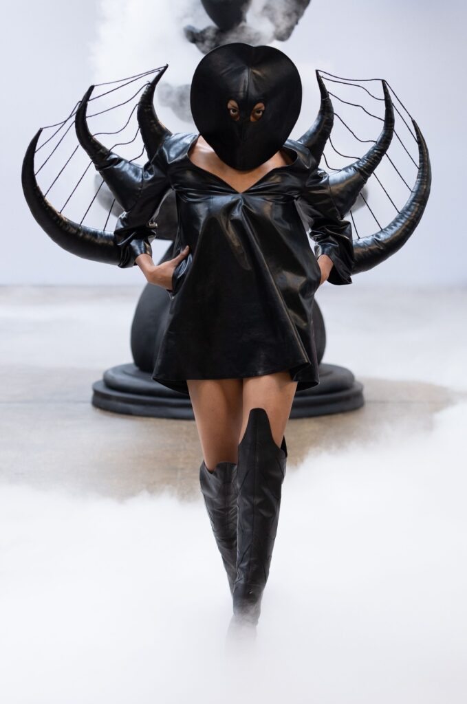 V hlavním městě Velké Británie na sebe upozornila rovněž čínská značka Buerlangma, jejíž nejnovější kolekce pracuje s pojmem padouch a podle toho také vypadá. Někdy až děsivé modely zosobňují záporné postavy z filmů i počítačových her, zároveň však odráží současnou proměnu Číny. Tamní mladá generace posouvá hranice a je plná jedinců, kteří se nebojí vyjádřit svou osobnost. Zbývá jen doufat, že v modelech od Buerlangmy nebude nikdo chodit po nocích.