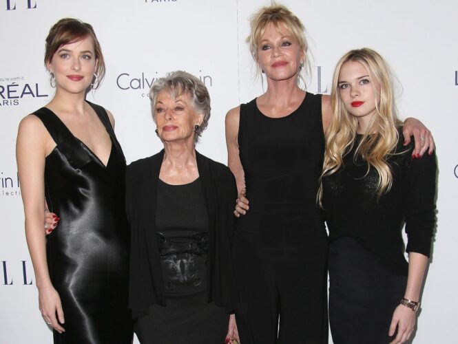 Herečka z Padesáti odstínů šedi Dakota Johnson pochází z dlouhé řady hollywoodských hvězd. Je dcerou herečky Melanie Griffith a herce Dona Johnsona. Kromě toho je i vnučkou Tippi Hedren. Herečka, které přezdívají Hitchcockova blondýna, hrála v jeho kultovních filmech Ptáci a Marnie. Dakota tak po svých nejbližších zdědila vrozený smysl pro styl spolu s dobrým vzhledem a potenciálem filmové hvězdy. Tippi Hedren je jednou z nejznámějších postav kinematografie 60. let, Melanie Griffith se proslavila filmem z 80. let Podnikavá dívka. Dakotin otec Don Johnson zazářil v seriálu Miami Vice. Není bez zajímavosti, že herectví se věnuje i Stella Banderas, kterou má Melanie Griffith z manželství se slavným španělským hercem Antonio Banderasem (na úvodní fotce je úplně vpravo).